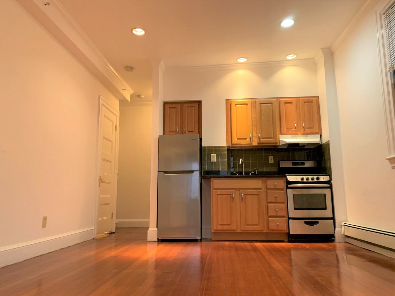 Absolutely fabulous, spacious, updated studio apartment with HUGE PORCH, nearly doubles the square footage. Dog-friendly. Available 9/1/25! Top floor. New washer and dryer in unit. MUST-SEE APARTMENT! So unique, sunny, and rare! A one-month broker fee applies. No security deposit. Contact Dan! Thank you! This attractive brick building contains studio, one bedroom and 2 bedroom units- some with private balconies. The property is conveniently located within walking distance of Newton Corner and its shops and restaurants and the Mass Pike. Most units feature hard wood floors, high ceilings and striking architectural details. • Close to public transportation: Express bus routes 501, 502, 503, 504 to Copley Square and Downtown are within walking distance • Some units have private balconies • Card-operated laundry room
