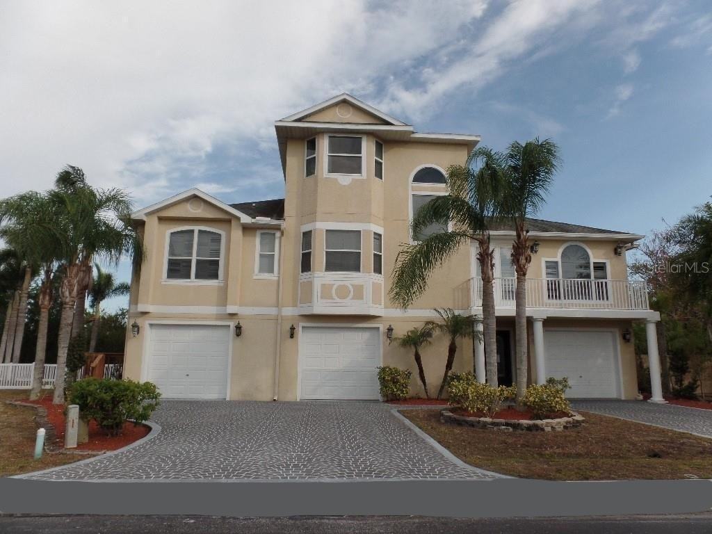 Option Rent to OWN. Privacy abounds in this Custom-Built Executive Home with views of the Gulf of Mexico. This home has tons of upgrades and lots of curb appeal which is sure to impress. High ceilings, crown molding, 7" interior and exterior doors. New roof, 2 new HVAC (2 zones), new appliances, new large plank wood floors, marble flooring in kitchen and baths and new travertine stone on all 4 of the balconies. Kitchen includes upgraded cabinets- stainless steel refrigerator, dishwasher and microwave- granite countertops, marble flooring, walk-in pantry, storage galore! Master bathroom has upgraded cabinetry, granite countertops, dual sinks, Jacuzzi tub, separate shower, and separate water closet, marble flooring and beautiful tile work. Home has 3 levels with French doors and many balconies to view the Gulf of Mexico. Five car garage (one separate for your Tesla or Porsche or any other precious toy). Fenced back yard and in-ground swimming pool with beautiful large custom paver patio, great outdoor space for entertaining. Central vacuum, water softener.