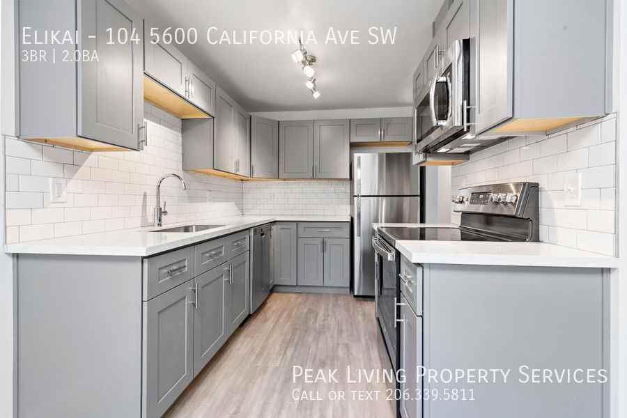 Book a Tour! Text/Call: Angie Rice (206)552.1598 or Email: **** **4 weeks free with 12 month lease + $250 look and lease incentive** Virtual Tour: Coming Soon! Welcome to the Elikai Community! Be the first to live in this NEWLY RENOVATED 3 bed/2 bath apartment home on California Ave in the heart of the Morgan Junction. With designer finishes, newer kitchen appliances and TONS of closet space, this spacious unit with private balcony, and in unit laundry is the perfect place to call home! Features include: Corner unit, large private balcony, full-size appliances, washer/dryer in unit, full bath, ample closet space, double pane windows, lots of kitchen space, a kitchen island and great natural light throughout! This prime location offers easy access to walk to all the local shops, grocery stores, restaurants and livelihood on California Ave, as well as Lincoln Park, the Fauntleroy Ferry, and the Alaska Junction; while being just a short drive/Metro ride to Downtown Seattle. Or, take the water taxi for an alternative mode of transportation; runs daily from 6am-11pm. Walk Score 81! Bike Score 72! Transit Score 48! **Available NOW* +3bd/2ba +Washer/Dryer In Unit +Vinyl Plank Flooring +Assigned Off-Street Parking $75 (Street Parking Also Available) Additional Info: +Utilities: Flat Rate Cost $80 For One Occupant $135 For Two +Electricity (Seattle City Light) & Internet - Resident Responsibility +Tenant Liability Insurance: $11/mo (Required) Move In Info: +Application fee: $47 +Holding fee: $500 +Refundable Security Deposit: 75% of One Month's Rent (Dependent on Application Status) We are a pet friendly property! No restrictions! +Pet Rent is $50 Per Month + $200 Refundable Pet Deposit Per Pet This Community is professionally managed by Peak Living Property Services and offers professional 24/7 emergency maintenance. For other vacancies and information, visit http www peaklivingps com availability We do not accept Comprehensive Reusable Tenant Screening Reports as defined by and pursuant to RCW 59.18. Equal Housing Opportunity. Income verification must be provided showing a gross monthly income of 3x the monthly rent, a minimum credit score of 600, and no history of rental eviction. ***Pictures may not show actual apt - but do show similar apartments and finishes*** Book a Tour! Text/Call: Angie Rice (206)552.1598 or Email: **** Kitchen Island Large Private Deck New Cabinets