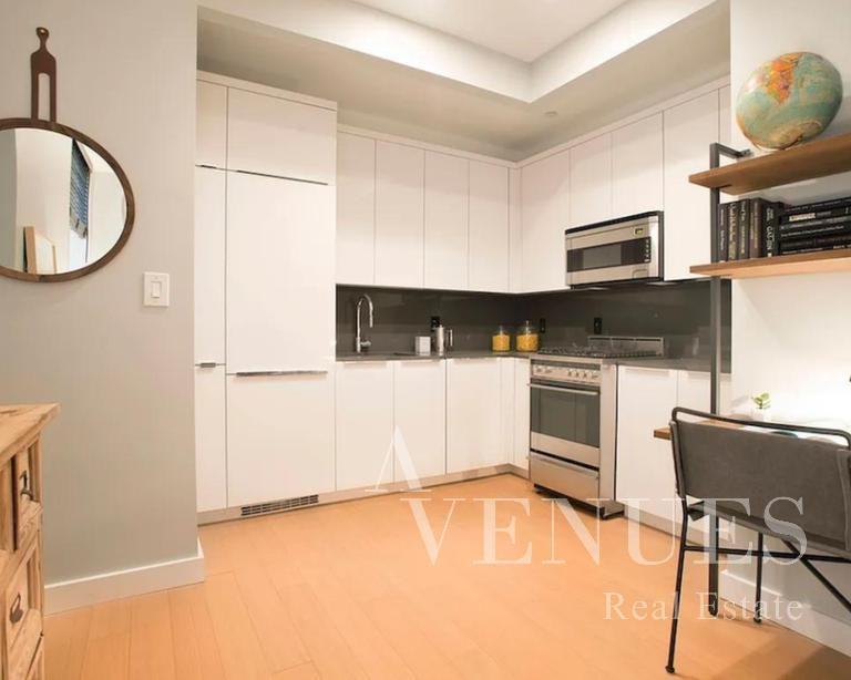 Residences feature 10 ceilings, over-sized picture frame windows, white oak finished flooring, and gracious modern kitchens accented with custom paneled appliances and white lacquer cabinetry. A dramatic 18 lobby with a striking fireplace, 24-hour concierge, and valet service set the scene for a warm welcome home. The beautiful outdoor rooftop pool is the ultimate luxury amenity and a great place to socialize, unwind and cool off. The residents lounge, reservable entertaining kitchen and dining room, Technogym outfitted fitness center, and yoga studio feature panoramic views of lower Manhattan and beyond.