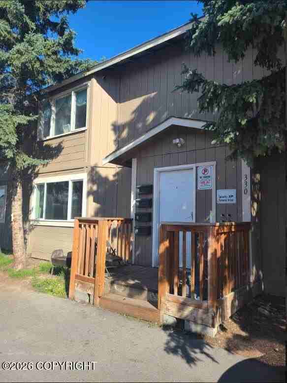 Property Status: Active Conveniently located 2 bedroom 1 bathroom apartment! This spacious, recently updated 2 bedroom 1 bathroom apartment is located minutes off the highway and within walking distance of multiple restaurants and shopping centers. Laundry room is located on the first floor of the common area. Each unit has dedicated parking spaces. This is an upstairs unit. Dogs on approval with an increase to the deposit. No cats. Office Phone: (907) 376-7368 Copyright © 2026 Alaska Multiple Listing Service. All rights reserved. All information provided by the listing agent/broker is deemed reliable but is not guaranteed and should be independently verified.
