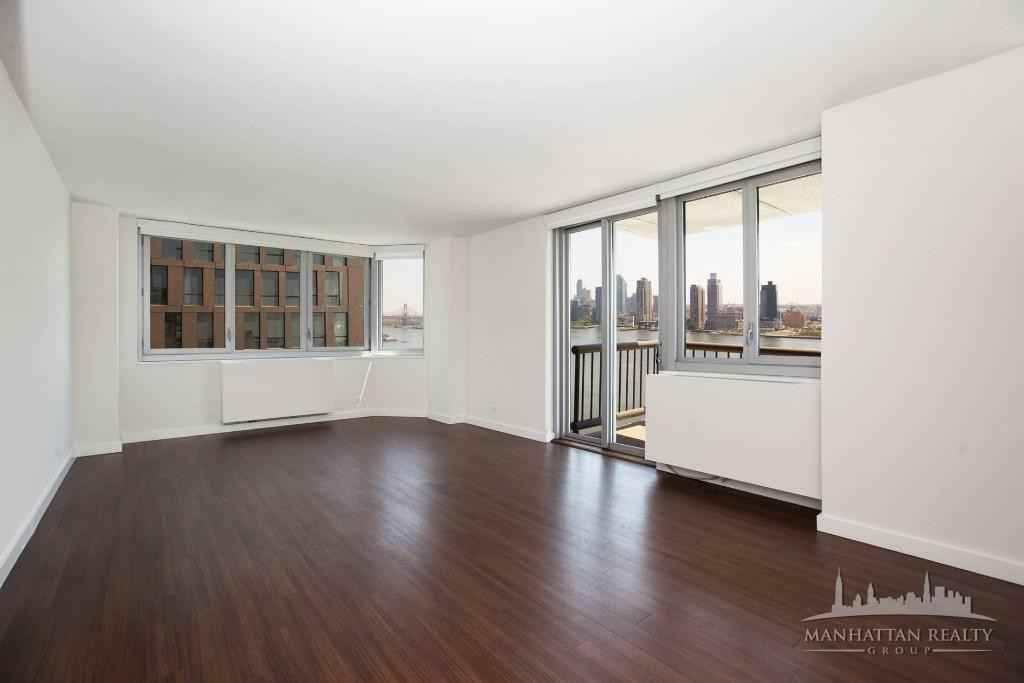 Amazing high-end luxury building located at the center of Murray hill, close to the best bars and restaurants midtown has to offer. Building features amazing amenities: a spectacular, glass enclosed three-story atrium lobby with a beautiful waterfall. There is a 24-hour Fitness Center, Resident Lounge, Media Room, children's Playroom, On-Site Laundry Valet and Dry Cleaner, and Gorgeous Roof Deck. Additional amenities include a 24 hour doorman and concierge, valet service and garage with valet parking. Large flex 3BR 2BA corner unit with a balcony ** Large windows with lots of light and stunning direct water views ** upgraded Granite kitchen/ stainless steel appliances ** 2 Marble baths ** hardwood floor ** lots of closet/storage space. For more information or to set up a viewing contact Alan 917-279-4447