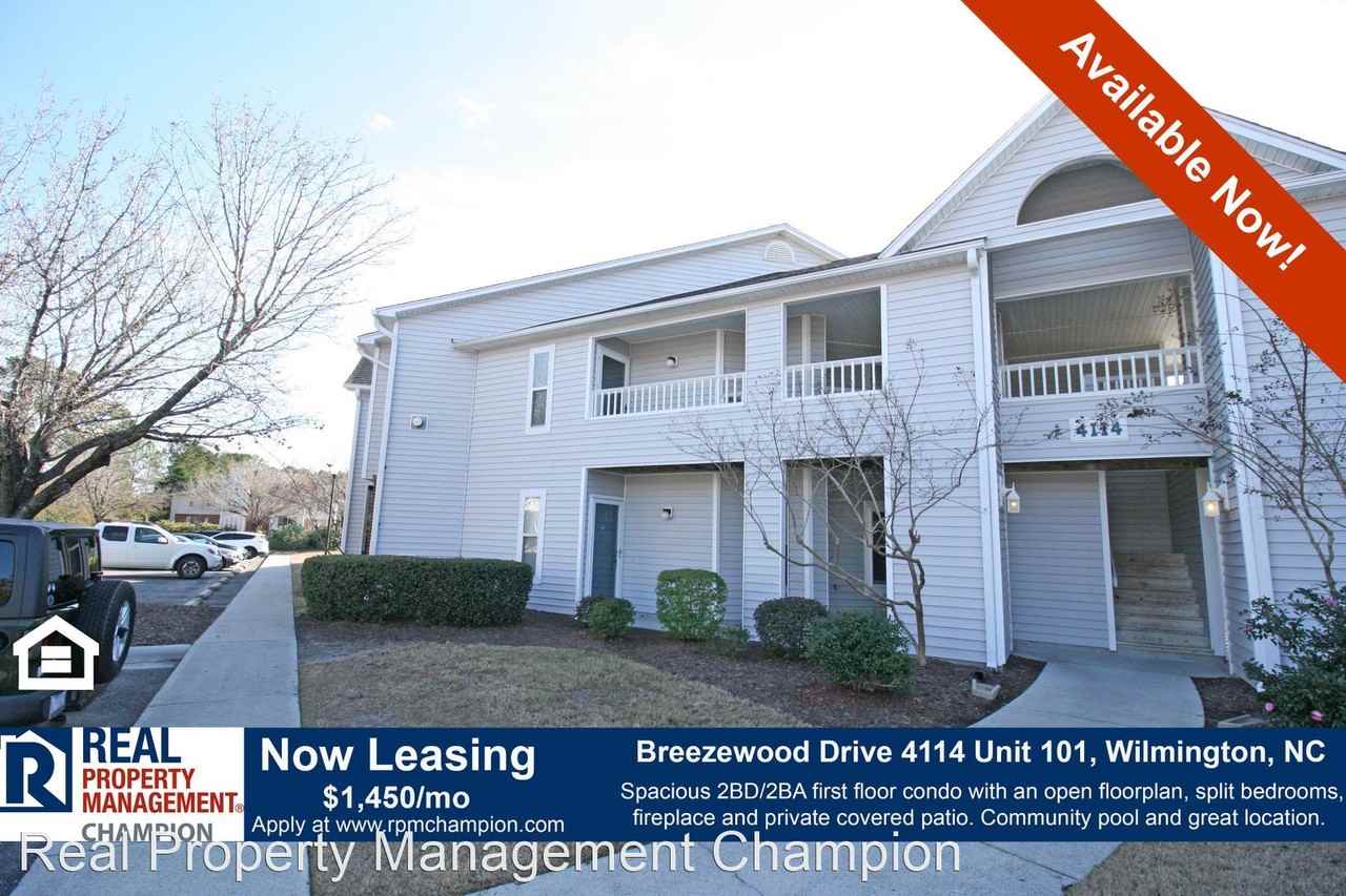 First Floor Condo with Spacious Floorplan - Welcome home to Breezewood! This spacious first floor 2BD/2BA condo features an open floor plan and split bedrooms. The living room includes a cozy fireplace and is open to the dining room with access to a covered patio. The well-planned kitchen offers ample counters and cabinet space as well as an adjacent laundry room with space for extra storage. The split bedrooms allow privacy for the master suite which features a double sink vanity, jetted tub, step-in shower, private water closet and over-sized walk-in closet. The guest bedroom is generous in size and is conveniently located to a full bath. This condo includes a community pool and is conveniently located to Monkey Junction, shopping, dining, area beaches and all that Wilmington has to offer. Schedule a Showing: https showmojo com 5ebd6c3076 listings mapsearch We are an Equal Housing Opportunity Management Company and abide by the term of the Federal Fair Housing Act. No Cats. Dogs negotiable and must have prior approval and required pet fees. Contact listing agent prior to submitting application. No Smoking, e-cigarettes or vaping. All applicants over 18 years of age are subject to a background check, including criminal, credit, employment verification, and past tenancy. No Pets Allowed
