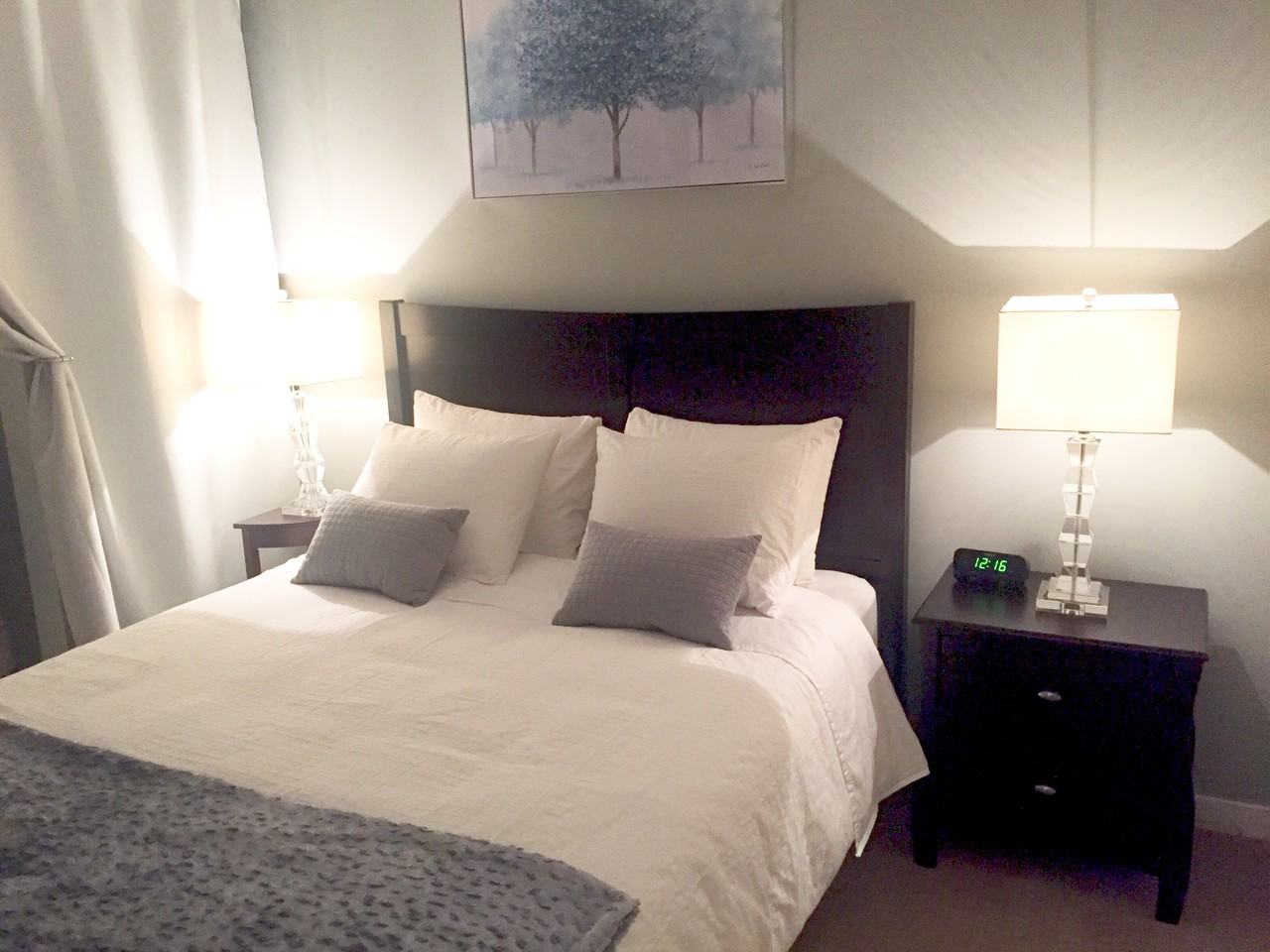AVAILABLE JULY 1st, 2020 Just bring in your suite case! A lovely fully furnished suite equipped with quality, attention and care to make you feel at home. Best suited for long term occupancy. Due to Covid19 we take extra care to disinfect frequently touched surfaces with an enhanced cleaning routine prior to your arrival. THE BUILDING * 24hr Concierge * 4 High-Speed Elevators * Fitness Centre * Bike Storage Room * Lounge* Meeting Room * No Smoking THE SUITE * Full bathroom with tub, hairdryer, toiletries, towels and extra large bath towels * Fully equipped kitchen with fridge, stove, oven, dishwasher, coffee maker and kettle, microwave, blender and toaster and of course, pots, dishes, cutlery an all the utensils you need to cook a meal * Open kitchen/dining and living room concept area * Work desk * Flat screen TV with Apple TV * Queen size bed * Bedroom with large closet and extra linens * Two good size dressers with plenty of storage suitable for longer stays * Iron with ironing board * Free wifi * First Aid Kit * In suite laundry * Underground parking (additional cost) * No pets * No smoking This charming one bedroom and a den offers large windows bringing in lots of natural light. Spacious open concept kitchen with modern granite countertops and stainless steel appliances, and all the small appliances you need to make yourself at home. Living room and den area offer a cozy sofa, flat screen TV and a work desk all overlooking city views. Retreat yourself in the cozy and relaxing bedroom with fresh good quality bedding. Extra sheets and blankets provided. Situated in the heart of the amazing city of Vancouver: walking distance to accounting and law firms, major national and international banks, and several business headquarters. The building has indoor access to the Skytrain station and Pacific Centre Shopping Mall - travel across the city via Skytrain without stepping outdoors! Also, this accommodation is surrounded by amazing quality restaurants such as Gotham and the Keg as well as fabulous shopping such as Holt Renfrew, Nordstrom, Geox, Apple, Lululemon, and so much more. Minutes away from fine and casual dining, coffee shops, live entertainment, theatres, Robson Street, Art Gallery etc. Grocery store Meinhardt Fine Foods is just outside your elevator door - great place for quick and healthy take out meals. Within a 10 minute walk you can explore the most sought after neighbourhoods of the city such Yaletown, Coal Harbour, Canada Place and Gas Town. This accommodation is normally rented for long term stays of 6 months to 1 year or more. Rent of $2,400 includes: ALL utilities: heat, water, internet, cable, hydro (cap $45) During June, July and August monthly rent is $2,600. Extra costs: Move in fee to strata $200 Underground Parking $150 per month (optional) Move out cleaning fee to homeowner $200 Due to Covid19 all viewers must wear a mask during the showing and we will provide hand sanitizer prior to entering the suite.
