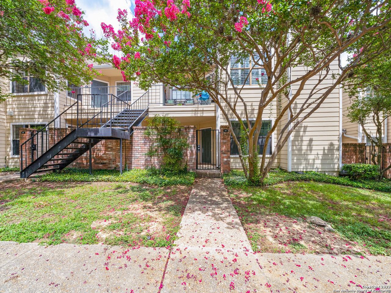 Come see this cozy one bedroom one bath first floor unit. All appliances and it also comes with a wood burning fireplace. New paint and brand new flooring! Exterior offers one covered parking space, beautifully landscaped community, amazing club house & pool. Centrally located...near USAA, Med Center, IH-10, great shopping & restaurants.