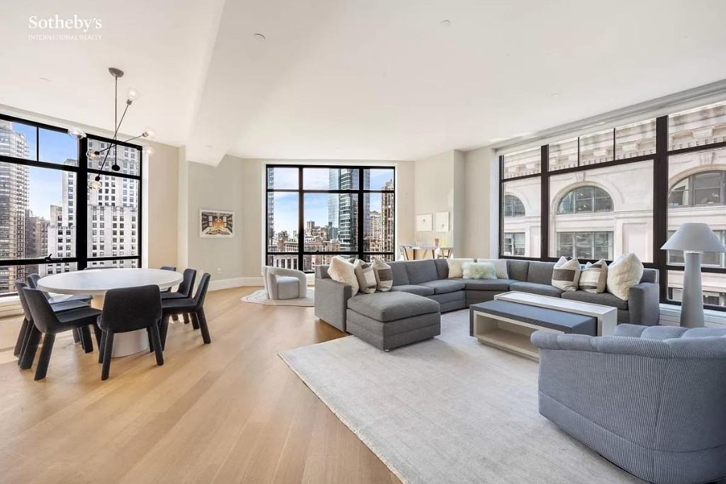 Enjoy spectacular protected views of Madison Square Park and the Flatiron Building from an impeccably crafted 3,309 +/- square foot, 4-bedroom, 4.5-bathroom loft-like corner home. The apartment is enviably sited high atop the prestigious 2016 residential conversion of the 1915 limestone and brick landmark designed by William Van Alen, of Chrysler Building fame. The thoughtful floor plan was conceived by noted American architect and designer, Alan Wanzenberg. There has been no other park-facing unit of this size available for resale on the top 6 floors of 10 Madison Square West. An Entry Gallery and Hallway finished in Venetian plaster lead to the expansive corner Great Room (229 by 372), distinguished by stunning views of Madison Square Park and the surrounding iconic limestone buildings. The adjacent Chefs Kitchen is well-appointed with classic white SieMatic cabinetry, Bianco Carrera marble, top-of-the-line appliances by Sub-Zero, Wolf and Miele and features a windowed Dining Area and a Breakfast Bar. The Primary Suite is comprised of a sumptuous Bedroom overlooking the park, 3 large custom-designed walk-in closets, and a lavish Primary Bath which includes a double vanity, soaking tub, and separate stall shower and is finished with Carrara marble walls, radiant heated floors and Dornbracht fixtures. Each of the 3 generously proportioned secondary Bedrooms look out onto sunny southern skies and feature en suite bathrooms and generous closets; the fourth also includes a walk-in closet. A Powder Room and Utility Closet with a side-by-side washer and vented dryer complete this exceptional home. All the state-of-the-art windows have been fitted with custom electronic window treatments. Services include a full-time Doorman, Concierge, Porter and an on-site Resident Manager. Amenities include a 10,000 square foot Residents Club with a Fitness Center managed by The Wright Fit, a 60 foot lap pool and hot tub, Yoga, Pilates and high energy studios, with a spa treatment room, locker rooms with private steam rooms and saunas, a Childrens Playroom, bike storage and a second floor Courtyard Garden designed by award-winning landscape architects, Matthews Nielsen.