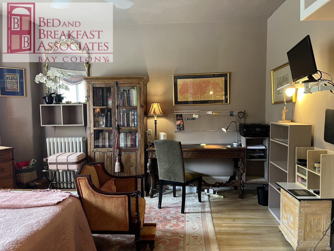 his Charming studio apartment, in a restored turn of the century exterior and art deco entrance, is located on Boylston Street, steps away from Back Bay, one block to Berklee School of Music and the subway, d less than 1/2 mile to Boston University and 2 blocks to the metro and bus. The second floor unit (elevator or stair entrance), includes a queen bed and desk in the main room and a fully equipped kitchen with dishwasher and microwave. Laundry is located in the building. $145 departure cleaning fee PO Box 57166Babson Park MA 0245701-617-720-0522****www bnbboston com