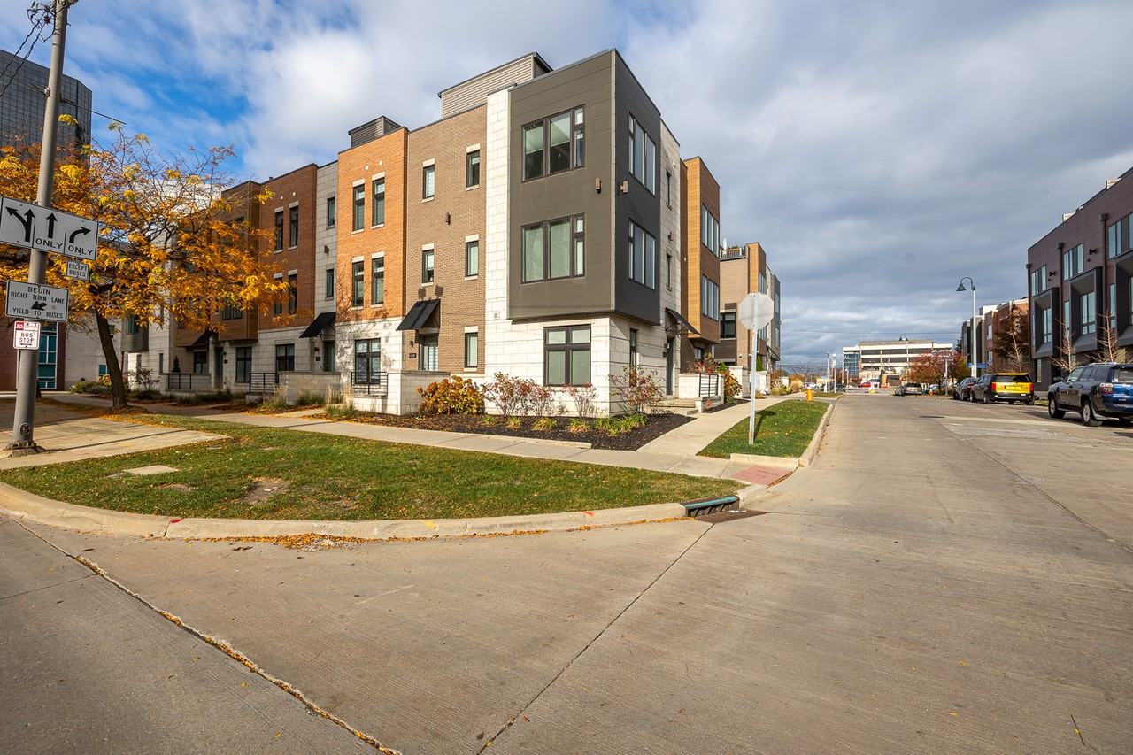 Welcome to this wonderful 3 bedroom townhome located in downtown Cleveland! This unit starts off with a two car garage. The bottom floor includes an office space, as well as closets for storage. As you move up to the 2nd floor, you are met with an open floor plan kitchen, dining, and living area, fitted with hardwood flooring. The Kitchen includes modern appliances, and ample cabinet and counter space. The living room comes with a built in electric fireplace. The 3rd floor includes two carpeted bedrooms, each fitted with walk-in closets, and full bathrooms. Additionally, there is an in-unit washer and dryer. Finally, the top floor includes a mini bar, and an outdoor rooftop patio, equip with a built in grill. Come tour this unit today!