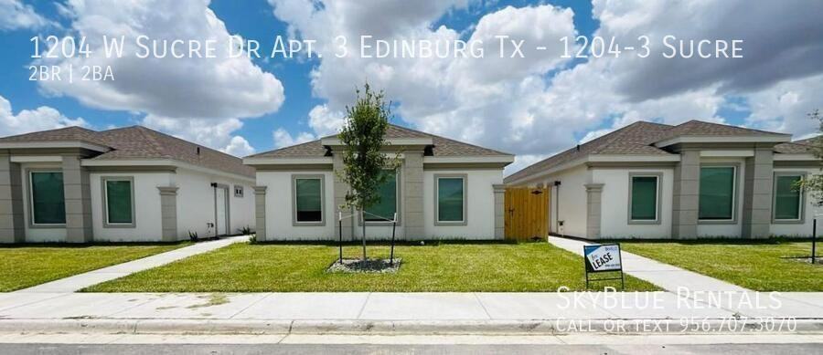 AVAILABLE MARCH 2026! Apply NOW or Schedule a Showing or Apply online here --> https tinyurl com 1204-3-W-Sucre - SUGAR MILLS GATED SUBDIVISION - A Beautiful unit located in Edinburg, New subdivision Sugar Mill Estates. The apartment is equipped with everything you'll need to make you feel at home. Located minutes from main retail, restaurants Hidalgo County Courthouse and The University of Texas Rio Grande Valley. Located off Sugar Mills - N. Sugar Rd & Chapin. Appliances & Features: Stainless Steel Appliances Washer and Dryer Assigned Parking Utilities Not Included Lawn Maintenance Included No Satellites Pet Friendly: $200 refundable pet deposit ($300 if 2 pets) + $50/pet one time pet fee. Max: 2 pets Lease Term: 12 mo. lease. Apply Now or Call/Text (956)436-5193 to schedule a showing. Year Built: 2024 Rental Assistance: No Fifty-five plus: No Multiplex: No
