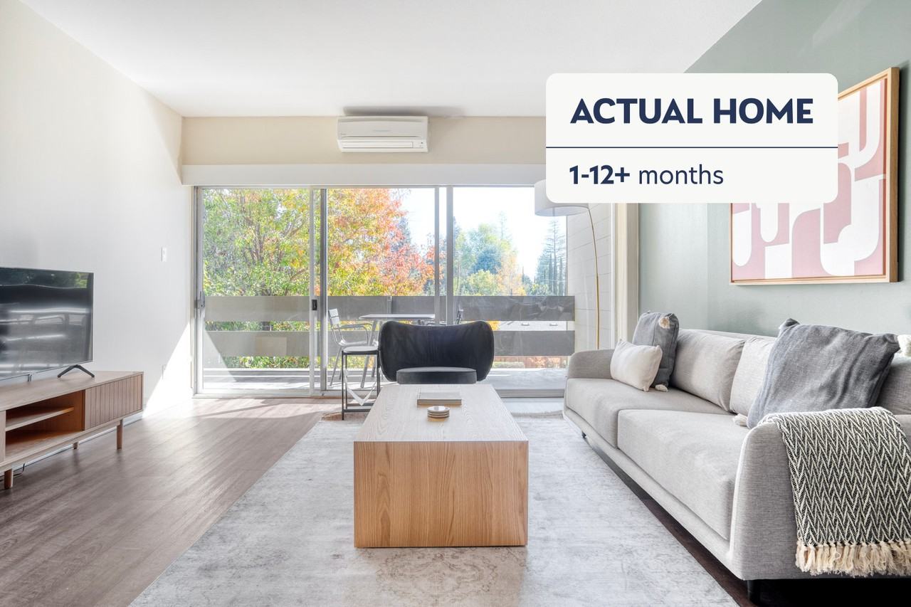 Feel at home wherever you choose to live with Blueground. You’ll love this comfortable Palo Alto Orchards furnished one bedroom apartment with its modern decor, fully equipped kitchen, and exquisite living room. Ideally located, you’re close to all the best that Palo Alto has to offer! (ID #SFO1256) The advertised rate of $4,646/month is the lowest available price, based on a 12 month(s) stay with a move-in date of March 10, 2026. Rates vary depending on the duration of stay, season, and other parameters. For exact pricing and additional pricing components, please visit our website and enter your desired move-in and move-out dates. The rate is applicable when billed upfront; it can be higher if billed in multiple payments. Brokers are welcome to reach out. Were you looking for an unfurnished lease? Try Blueground instead and upgrade from unfurnished to furnished living: - Furnished at rates comparable to unfurnished - No setup or furniture costs - save thousands - Move-in ready - save time, just bring your suitcase Designed with you in mind Thoughtfully designed with bespoke finishes, modern furnishings, and a fully equipped kitchen, you’ll enjoy that “I’m home” feeling with this Blueground apartment. Whether you’re lounging in your comfortable living room streaming the latest and greatest entertainment on the smart TV or premium wireless speaker, or getting some well-earned rest on the superior quality mattress with fully stocked linens, you’ll fall in love with everything this Palo Alto Orchards apartment has to offer. This apartment also offers in-apartment laundry. Sleeping arrangements - King Bed, 70.8in/180cm Amenities Building amenities unique to this one bedroom apartment include an on-site: - BBQ Area - Dryer - Elevator - Swimming pool - Washing machine - Parking - Pets allowed Arrival and ongoing support The entire apartment is yours to enjoy! Throughout your stay, you’ll have access to our Client Experience team through the Blueground App. You can schedule additional cleanings, submit maintenance requests, and view our neighborhood recommendations with just a few taps. We’ll share all details upon confirmation of your stay. Other things to note Building amenities may have an extra cost. This Blueground apartment has flexible lease options, allowing you to book it for one month, a year, or more. Pets are welcome, though weight limits and breed restrictions apply and may incur fees. Parking is offered based on availability and is subject to a fee. We take great pride in ensuring every photo displayed is shot in our own units with our actual furnishings. That said, we regularly refresh our decor and furniture arrangement, which may differ from what’s pictured.