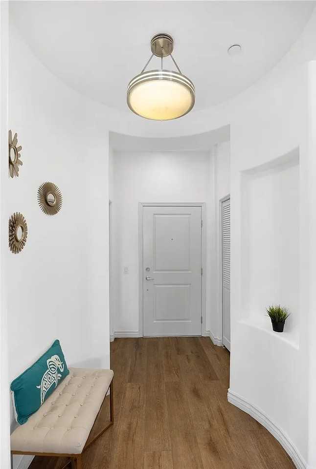 Conveniently located off the 10-freeway and walking distance to nearby supermarkets, youll find this turnkey 1 bed 1.5 bath condo nestled in the heart of all eateries and amenities of Atlantic Times Square. Located on the second floor, this condo welcomes you with soaring 10 feet high ceilings throughout and features an open floor plan, modern kitchen with updated backsplash, and an oversized large patio that is ideal for gatherings. The master suite overlooks the patio and is smartly tucked on one side for privacy while the half bath and in-unit stacked washer and dryer is on the opposite side of this spacious unit. This unit comes with one gated parking space, and guests can enjoy free public parking on parking level two. HOA amenities include: pool, spa/hot tub, clubhouse, 24 hour gated security and patrol, water, trash, and maintenance of grounds