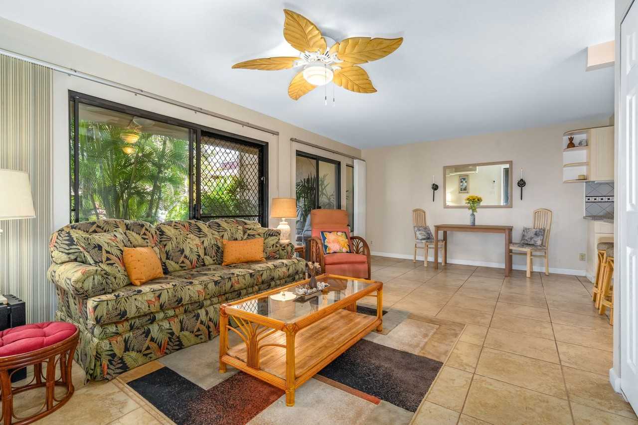 Maui Gardens Condominium is just steps to a sandy beach, amazing sunsets, and within steps of resort amenities. As you enter this two-bedroom/one-and-a-half bath ground floor condo at Maui Gardens B-105 it is fully furnished with tile throughout. Each morning you can enjoy your coffee on your lanai or dine alfresco with the lanai table, cushioned chairs, and tropical breezes. From your lanai enter through the sliding glass doors to the living room which has a comfortable sofa with a flat-screen Smart TV and cable included. A split air conditioner and a ceiling fan in the living room will keep you cool. The Kitchen is fully equipped for the chef in the family with appliances that include a dishwasher, microwave, and all the dishware to ensure a comfortable stay. Dining table for two and a breakfast bar for two. Grill utensils are also included for the BBQ area. The two Bedrooms have very comfortable Queen beds, spacious closets, and ceiling fans for added comfort. There is a half bath and a full bathroom with a luxurious walk-in shower. Complete with a stacked washer/dryer conveniently located in the hallway near the bedrooms and bathroom. Modern resort living at Maui Gardens located right in the heart of Kihei, you will enjoy this property as it is a block away from a sandy beach, Times Market, Azeka's which has popular shopping, dining, and a gym. Residential living with the feel of a resort, the Maui Garden amenities include a pool, hot tub, BBQ area, tennis court, and pickleball. B-105 is within steps of resort amenities and has one reserved parking space for your vehicle. Rent: $3,100.00 + GE Tax $146.07 = $3,246.07 6 Month Lease Term Tenants are responsible for electricity and internet The owner pays for cable, water/sewer, and trash. No Smoking, No Pets Showings by Appointment Only, Please Email **** or call 808-495-4219