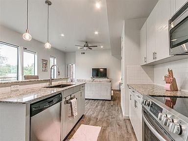 This spacious third-floor corner unit condo is in the highly sought-after Loft 401 Community, where elegance meets convenience. Incredible location just a short walk from OU Campus, Campus Corner, and the OU Football Stadium! Enjoy resort-like amenities including a swimming pool, fire-pit with fireside seating, outdoor kitchen, Club Room with a billiard table, and a fitness center. This elegant 2 bed, 2 bath condo is your ideal retreat. With its spacious open-concept layout, tall ceilings, tile flooring, and abundant natural light, it's the perfect blend of style and comfort. The kitchen boasts granite countertops, matching appliances, and modern cabinetry. The spacious primary bedroom features a walk-in closet and en suite bathroom. The secondary bedroom is located on the opposite end of the condo along with the guest bathroom. The east side of the condo features a balcony creating a private outdoor living space. The unit also comes complete with a washer, dryer, and refrigerator. For added security and privacy, the front door is accessed through an interior hallway, only accessible after accessing the complex with a code by the pool, ensuring peace of mind. The fourth floor adds an extra touch of luxury with a beautiful patio offering scenic views and acting as an outdoor living room. Additional perks include a gated covered parking garage with two assigned spaces- 6 and 13 located in the north gated garage. Contact us to schedule a showing.