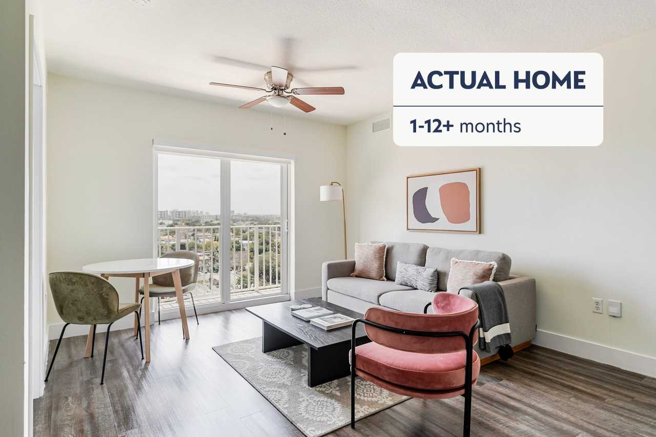 Show up and start living from day one in Miami with this cozy two bedroom Blueground apartment. You’ll love coming home to this thoughtfully furnished, beautifully designed, and fully equipped Little Havana home. (ID #MIA142) The advertised rate of $3,933/month is the lowest available price, based on a 2 month(s) and 1 day(s) stay with a move-in date of May 1, 2026. If you’re looking for a 1-year stay, the rate is $4,081/month. Rates vary depending on the duration of stay, season, and other parameters. For exact pricing and additional pricing components, please visit our website and enter your desired move-in and move-out dates. The rate is applicable when billed upfront; it can be higher if billed in multiple payments. Brokers are welcome to reach out. Were you looking for an unfurnished lease? Try Blueground instead and upgrade from unfurnished to furnished living: - Furnished at rates comparable to unfurnished - No setup or furniture costs - save thousands - Move-in ready - save time, just bring your suitcase Designed with you in mind Thoughtfully designed with bespoke finishes, modern furnishings, and a fully equipped kitchen, you’ll enjoy that “I’m home” feeling with this Blueground apartment. Whether you’re lounging in your pretty living room streaming the latest and greatest entertainment on the smart TV or premium wireless speaker, or getting some well-earned rest on the superior quality mattress with luxury linens, you’ll fall in love with everything this Little Havana apartment has to offer. This apartment also offers in-apartment laundry. Sleeping arrangements - Queen Bed, 63in/160cm - King Bed, 70.8in/180cm Amenities Building amenities unique to this two bedroom apartment include an on-site: - Dryer - Elevator - Washing machine - Parking - Pets allowed Arrival and ongoing support The entire apartment is yours to enjoy! Throughout your stay, you’ll have access to our Client Experience team through the Blueground App. You can schedule additional cleanings, submit maintenance requests, and view our neighborhood recommendations with just a few taps. We’ll share all details upon confirmation of your stay. Ideally Located This furnished apartment is located in Little Havana, a dynamic neighborhood just west of Downtown Miami that’s home to a flourishing Cuban-American and Latino population. Dig into Cuban culture by experiencing the live music, cigar shops, and works of art along Calle Ocho. Craving something to eat or drink? Be sure to grab a cup of Cuban coffee at La Colada Gourmet and a Cuban sandwich at Sanguich de Miami. This area has plenty of entertainment options as well, like the Tower Theater, an Art Deco theater built in the 1920s. To get to Little Havana by public transportation, take the 207 and 208 bus lines. Other things to note This Blueground apartment has flexible lease options, allowing you to book it for one month, a year, or more. Pets are welcome, though weight limits and breed restrictions apply and may incur fees. Parking is offered based on availability and is subject to a fee. We take great pride in ensuring every photo displayed is shot in our own units with our actual furnishings. That said, we regularly refresh our decor and furniture arrangement, which may differ from what’s pictured.