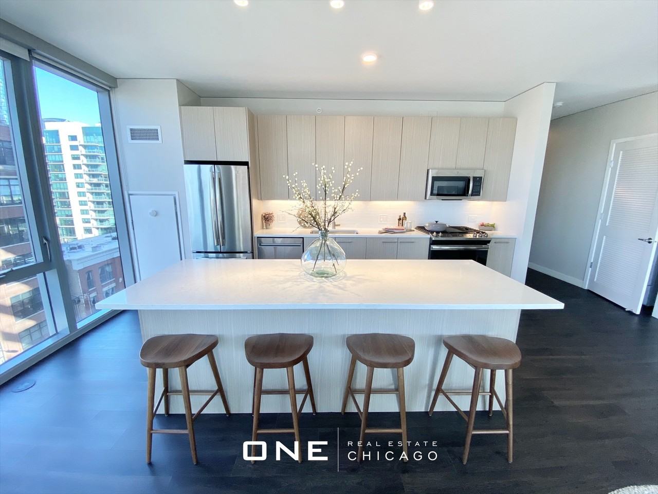 Apartment Amenities: Nest Thermostat and Integrated Entry Door Locks Stainless Steel Appliances Under-Cabinet Lighting White Glass Subway Tile Kitchen Backsplash White Quartz Countertops Dark Chestnut Wood-Look Flooring Throughout High Ceilings Balconies in select units In-Unit Full Size Laundry Large Custom Closets Light Custom European Cabinetry with Slow Close Doors and Drawers Moen Fixtures and Faucets Community Amenities: Private Barista Resident Lounge Resort-Style Pool Spa Social Gathering Space Tide Cleaners Wellness Studio Club Level Living Expansive Dog Run Fire Pits Fitness Center Gear Garage Hammock / Lawn Lounging Area Library Managed Package Receiving Room with Cold Storage for perishables Media Room Outdoor Fitness Area Outdoor Grilling Dining Skyline Views Parking Garage with Reserved Parking Prime West Loop location Peoria at Adams
