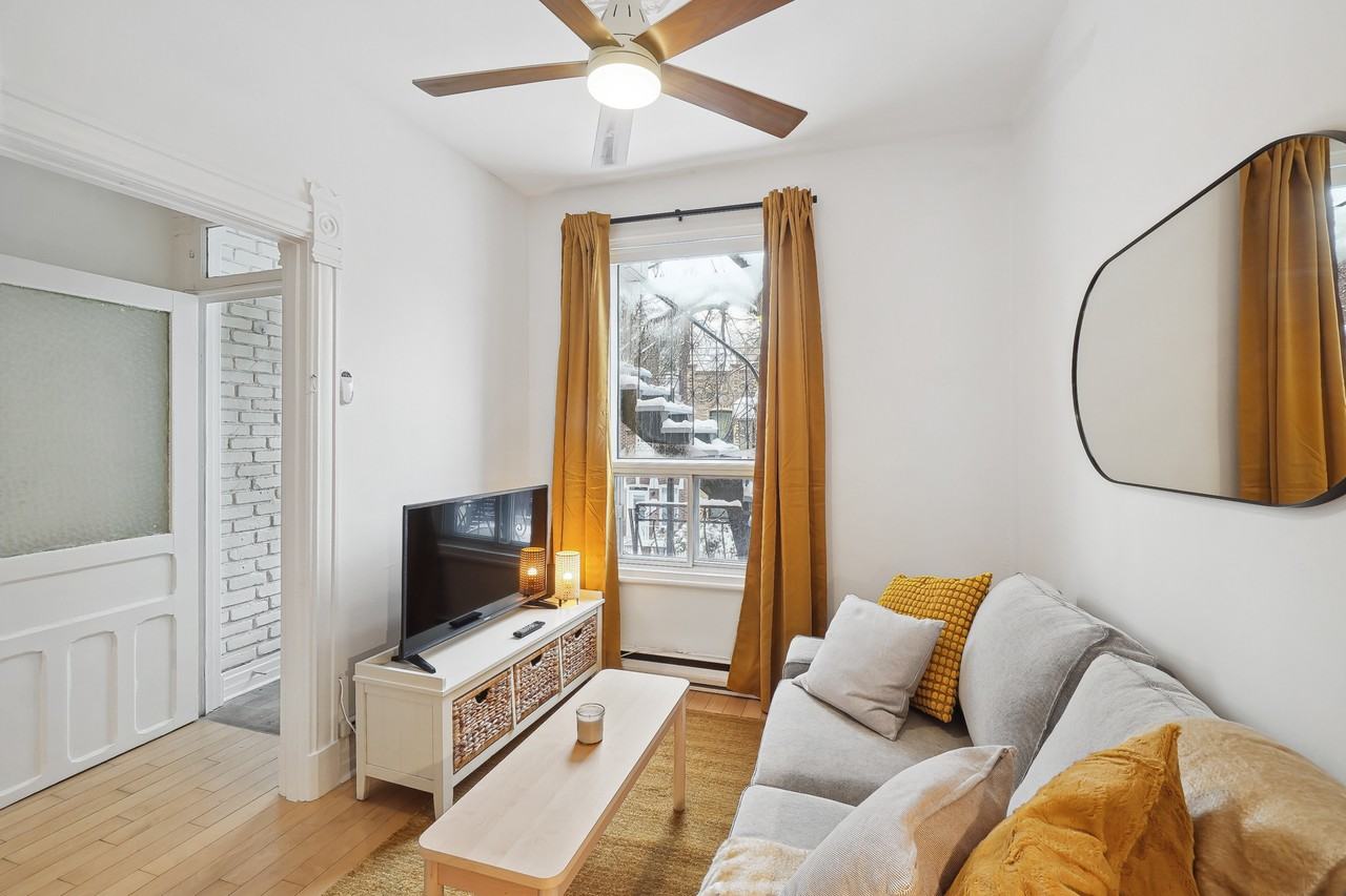 3 1/2 apartment fully furnished You will fall under the old-fashioned charm of this beautifully renovated apartment completely furnished Brief description : - Located on the second floor with independent entrance - Double living room with walk-in in the bedroom portion - Large renovated kitchen with plenty of light - Renovated bathroom with shower - Beautiful woodwork throughout the apartment - Natural wood floor - Charming cedar rear balcony furnished with locker - Quiet street with mature trees - At the corner of the Promenade Masson (restaurants, brasseries and artisan bakeries ...) - In the middle of all services (banks, supermarkets, schools, clinic ...) - Two min. walk from Jean de Brébeuf primary school - Quick access to public transport