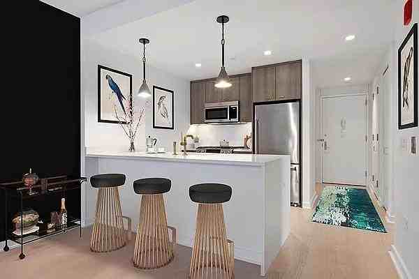Unlock a new dimension of living in this apartment with high ceilings that stretch toward the sky, creating an environment that feels both spacious and intimate. These ceilings allow light to flow freely throughout the space, enhancing the open layout and making every room feel even more expansive. The apartments modern design is characterized by clean lines and elegant finishes, creating a sleek, contemporary aesthetic that is as functional as it is beautiful. Whether youre cooking in the kitchen or lounging in the living area, the high ceilings provide a luxurious backdrop for every activity. Every detail has been carefully considered, from the ample storage to the high-end fixtures, ensuring that this home is as practical as it is stylish.