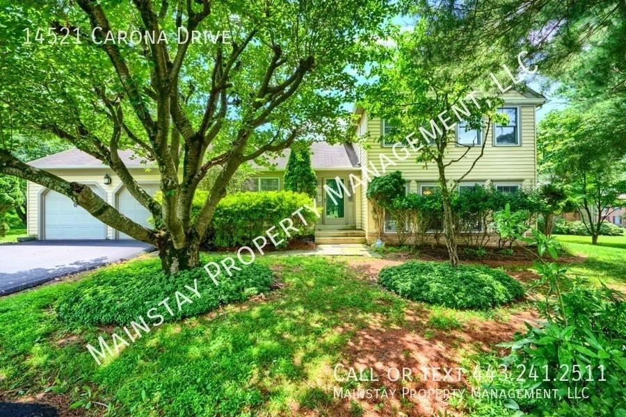 Available immediately! Welcome to 14521 Carona Drive, a 4 bedroom single family home situated on a beautiful half acre tee-lined lot. Main level features beautiful hardwoods and neutral paint throughout the family room, dining room, and kitchen. Kitchen is complete with a full suite of SS appliances, custom hardwood cabinets, large windows and breakfast nook. Main level also includes an idyllic sunroom, full of natural light and high ceilings with a view of the private plush green yard and access to the back deck. Down the split level you'll find a bonus living space finished off with built ins and an exposed brick decorative fireplace, plus a half bath. Situated on the top level is 4 bedrooms and 2 full baths. The primary bedroom includes an en-suite full bathroom, while the other three bedrooms share the full bath in the hallway. Dogs negotiable with $45 in monthly pet rent. Schedule your showing today!