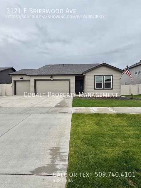 Spacious & Stylish Family Home in the Mead School District – Available Now! Welcome to 3121 E Brierwood Ave, a move-in ready Rancher-style home located in one of Spokane's most desirable neighborhoods. With nearly new finishes and thoughtful design throughout, this home offers the space, comfort, and convenience your family needs. • Open-Concept Living – Step into a bright great room with soaring 9-foot ceilings and durable laminate flooring that flows throughout the home. • Modern Kitchen – Enjoy a large quartz island, tons of cabinet space with crown molding, and an oversized pantry—perfect for everyday meals or hosting friends and family. • 4 Bedrooms | 2 Bathrooms – Spacious bedrooms and full baths provide plenty of room for everyone to spread out and feel at home. • Fully Fenced Backyard – Low-maintenance yard with in-ground sprinklers, ideal for outdoor children play, BBQs, or relaxing in privacy. • Ample Parking – 3-car garage plus an oversized driveway gives you space for vehicles, bikes, or extra storage. • Prime Location – Located in the top-rated Mead School District, just minutes from schools, playgrounds, shopping, and scenic walking trails. Whether you're commuting or working from home, you'll love the easy access to everything. * Rent: $2,995/mo * Security Deposit: $2,995 * Pet-free, non-smoking home We do not accept reusable screening reports. Homes like this don't stay on the market long! Schedule your tour today by calling 509-283-8596, or apply directly at www RentCobalt com