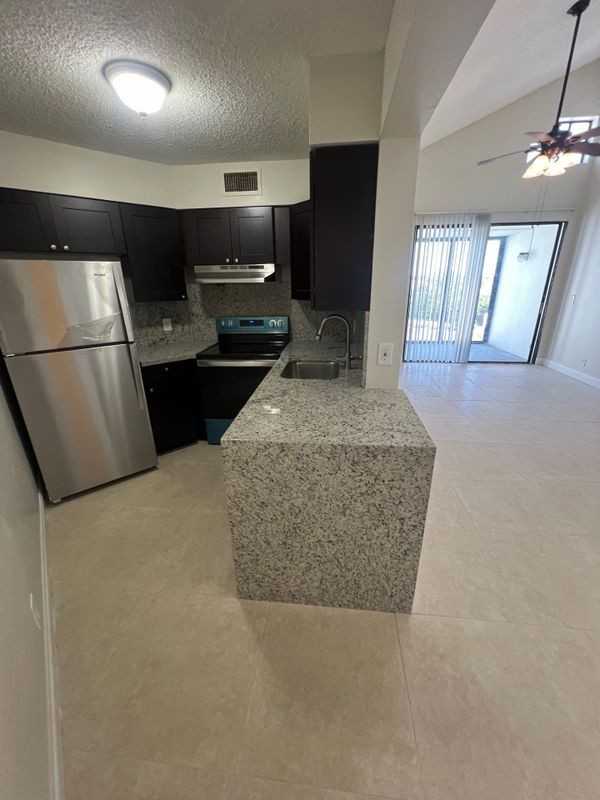 **AVAILABLE FOR AUGUST 1 MOVE-IN** This updated 1/1 condo (720 sq ft) on the 3rd floor (building HAS an elevator) of the ALL AGES, GATED & resort style Lake Pointe Condominium is a MUST-SEE!! Unit was completely remodeled with a NEWER kitchen with granite countertops and stainless steel appliances in January 2024. The bathroom has been completely remodeled from top to bottom last year as well. All newer appliances including the washer/dryer in unit and this top floor unit has HIGH vaulted ceilings making the living room appear even bigger than it already is. Unit features a 720 sq ft floor-plan, a walk-in closet in the master bedroom and a screened in balcony and a large pantry/storage closet right alongside your kitchen! Property is tiled throughout and will be freshly painted! All windows have hurricane impact screens and washer/dryer is INSIDE the unit. Community features 2 pools, tennis courts, a walking path around lake and grills, guest parking is plentiful and is just minu...