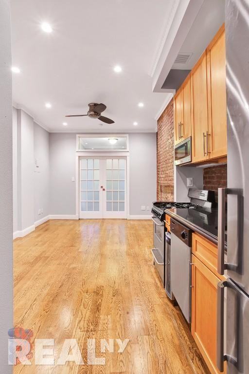 Available for August 1 occupancy!Spacious 1 bedroom, 1 bath apartment in a beautifully restored West Village pre-war building. The apartment features a decorative fireplace, luxury finishes and modern updates including a renovated kitchen with stainless steel appliances, dishwasher, and in-unit laundry. Beautiful hardwood floors throughout, high ceilings and exposed brick accent walls in most rooms. Located just steps from excellent shopping and dining, with easy access to 1/2/3/L/B/D/F/M/A/C/E subway lines, this apartment offers a perfect blend of style and convenience. Our mission at Real New York is to turn the typical moving experience on its head. Our team is filled with real people that have real expertise, combining diverse backgrounds with knowledge of a market that includes over 1,000 exclusive Real listings and access to 100% to New Yorks available apartments. From Full Service to Walk-Ups. Photos may be representative of like or kind apartments. Upfront move-in costs: $20 Application Fee (per person) First Month of Rent One-Month Security Deposit