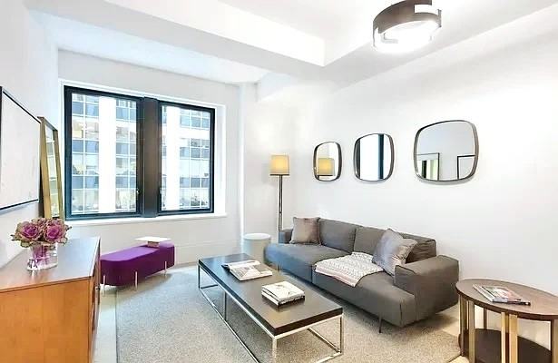 Welcome to your home in the heart of the bustling city! This updated Flex 2 unit boasts luxurious features and modern amenities that will make you feel like royalty every day. Upon entering, you will be greeted by the gleaming and newly renovated hardwood floors that run throughout the entire space, adding warmth and elegance to the ambiance. Expertly designed to maximize the living space, with the option to easily convert it into a two-bedroom layout to suit your needs. The separate kitchen features stunning granite countertops, wood cabinets, and top-of-the-line stainless steel appliances, making meal preparation an enjoyable experience. The spacious marble bathroom adds an extra touch of indulgence, with sleek fixtures and a clean, sophisticated design. As you step outside, you'll be greeted by the breathtaking south exposure that floods the space with natural light, creating an inviting and cozy atmosphere. The building itself is a work of art, with a 24-hour attended lobby, an on-site parking garage, and a new fitness center for your convenience. You can take in the stunning views of the city from the beautifully landscaped sundeck, a perfect retreat after a long day. listed price is Net effective based Transportaion nearby 2, 3, 4, 5, A, C, J, M, Z, N, RBuilding Amenities:Community Recreation FacilitiesConciergeGarage ParkingGymLaundry in BuildingLive-in SuperPackage RoomParking AvailableSmoke-freeValet ParkingWheelchair AccessCentral AirHardwood FloorsWaterfront I do not represent the landlord, I am a tenant's agent offering services to help renters find housing.