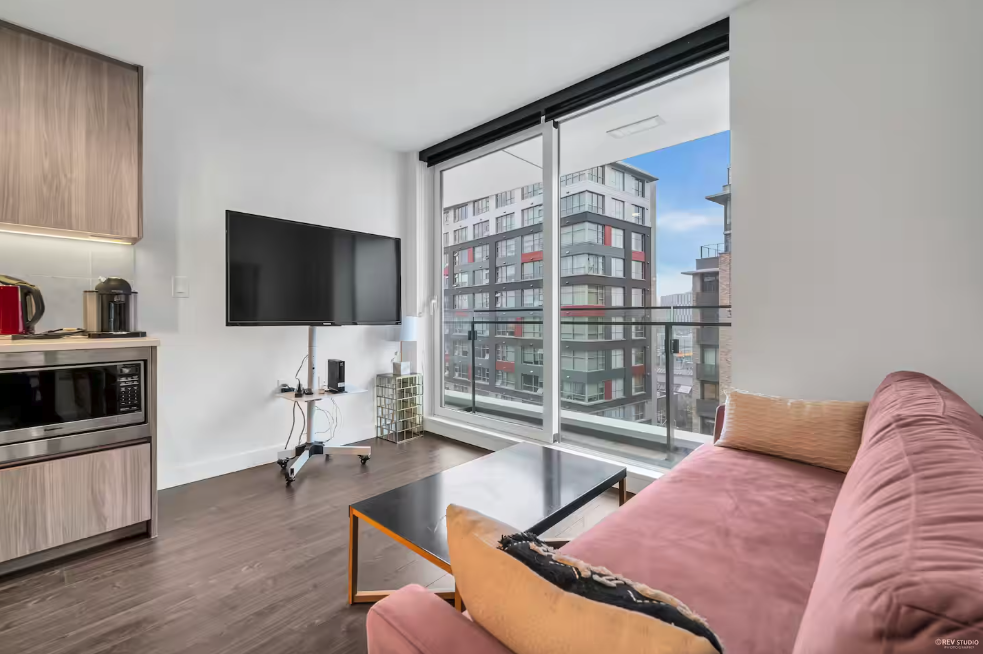 Fully Furnished Apartment in Olympic Village This beautiful 1-bedroom, 1-den, 1-bathroom furnished apartment is located in the recently completed Avenue One complex in Olympic Village. Perfect for long-term stays. Features: -Gourmet kitchen with Miele appliances. -In-suite laundry and ample storage. -Tiny balcony connected to the bedroom. Sleeping Arrangements: - Queen-sized bed in the bedroom. - Single bed in the den, accommodating up to 3 people. Convenient Location: - Steps from the Seawall (400 steps), Hinge Park (250 steps), and a 7-minute walk to Olympic Village Station. - Easy access to public transit and downtown. Included: - Gas, Washer/dryer, Furniture, Strata Fee ( plus Central AC cost) Not included: - Wifi, Electricity, Parking Building Amenities: - Concierge service, fitness center, and stylish lounges - Dog park with a wash station and a touchless car wash Additional Details: - One pet allowed - Move-in fee required - Security deposit + Furniture deposit required - No smoking, no party -No parking -References required - Available February 15,2025 -Rental period: Monthly, 6 months or 1 year