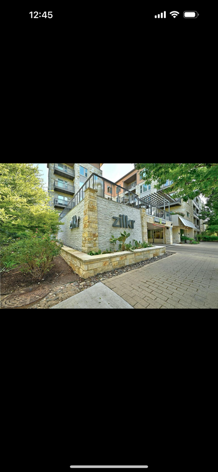 This elegantly remodeled “treehouse” inspired condo is now available! This gorgeous home overlooks lush trees and has a peek-a-boo downtown view too! Your living area is bright, open and airy, with many windows. The 10 ft ceilings and formal foyer make you feel royal immediately upon entry. The sleek kitchen boasts sparkling white quartz countertops, a sleek white backsplash, stainless steel appliances, and a large kitchen island making this a chef’s dream. The living room features a custom wood chevron built-in-bar and room for a large sectional sofa perfect for entertaining. The bedroom is king-sized and features a sliding “Texas” barn door and large walk-in closet. Your bathroom features a single extended vanity with quartz countertops and an oversized garden tub/shower combo. Zilkr on the Park features a 5-star amenity package that includes a state of the art fitness center, business center, conference room, clubroom with billiard table, card table, and 80” flat screens, swanky swimming pool, BBQ, firepit, and garden area. Live steps away from Austin’s main attractions and Barton Springs pool, Zilker park, Green belt, downtown, and so much more! INCLUDES: 1 parking space and access to bike and kayak storage.