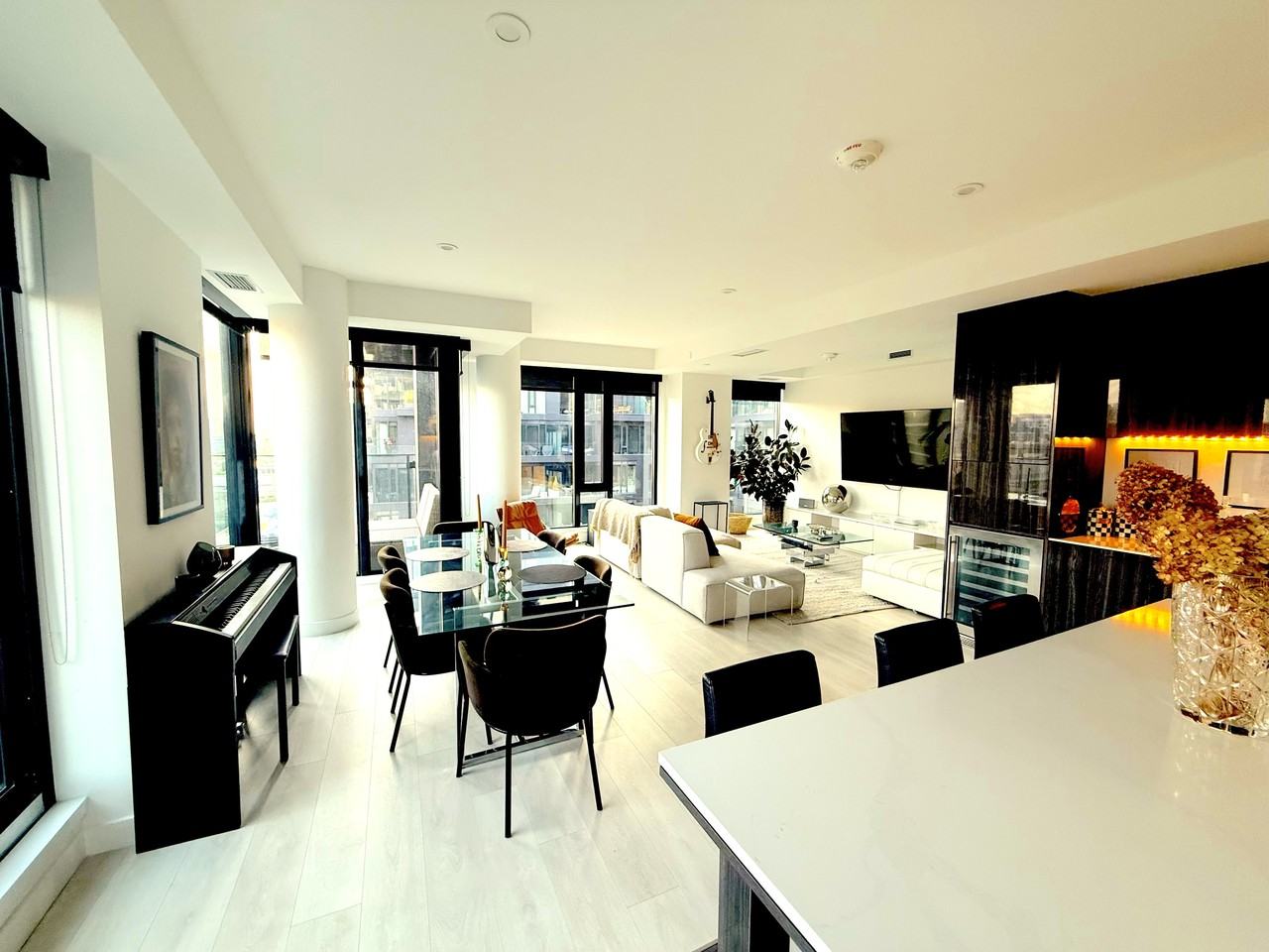 Step into this stunning 2-bedroom plus den, 2-bathroom corner suite in the iconic Waterworks building a perfect blend of modern design and urban convenience. This uniquely spacious home features an expansive open-concept living and dining area drenched in natural light through floor-to-ceiling windows, creating an airy, sophisticated vibe day and night. Host with ease on your private terrace a rare downtown perk perfectly sized for entertaining and equipped for your own exclusive barbecue. Inside, the sleek kitchen is equal parts style and function, with high-end integrated appliances, a massive island for gathering, and elegant finishes throughout. Enjoy the added convenience of a designated laundry room/pantry for extra storage and organization. Both bedrooms are generously sized, with the primary suite offering a spa-inspired ensuite and ample closet space. Your parking spot is extremely conveniently located for quick in-and-out access, while the buildings Waterworks Food Hall just downstairs means world-class eats are always steps away. With premium amenities and an unbeatable King West location, this exceptional corner unit delivers the ultimate in space, light, and modern luxury at one of Torontos most coveted addresses.