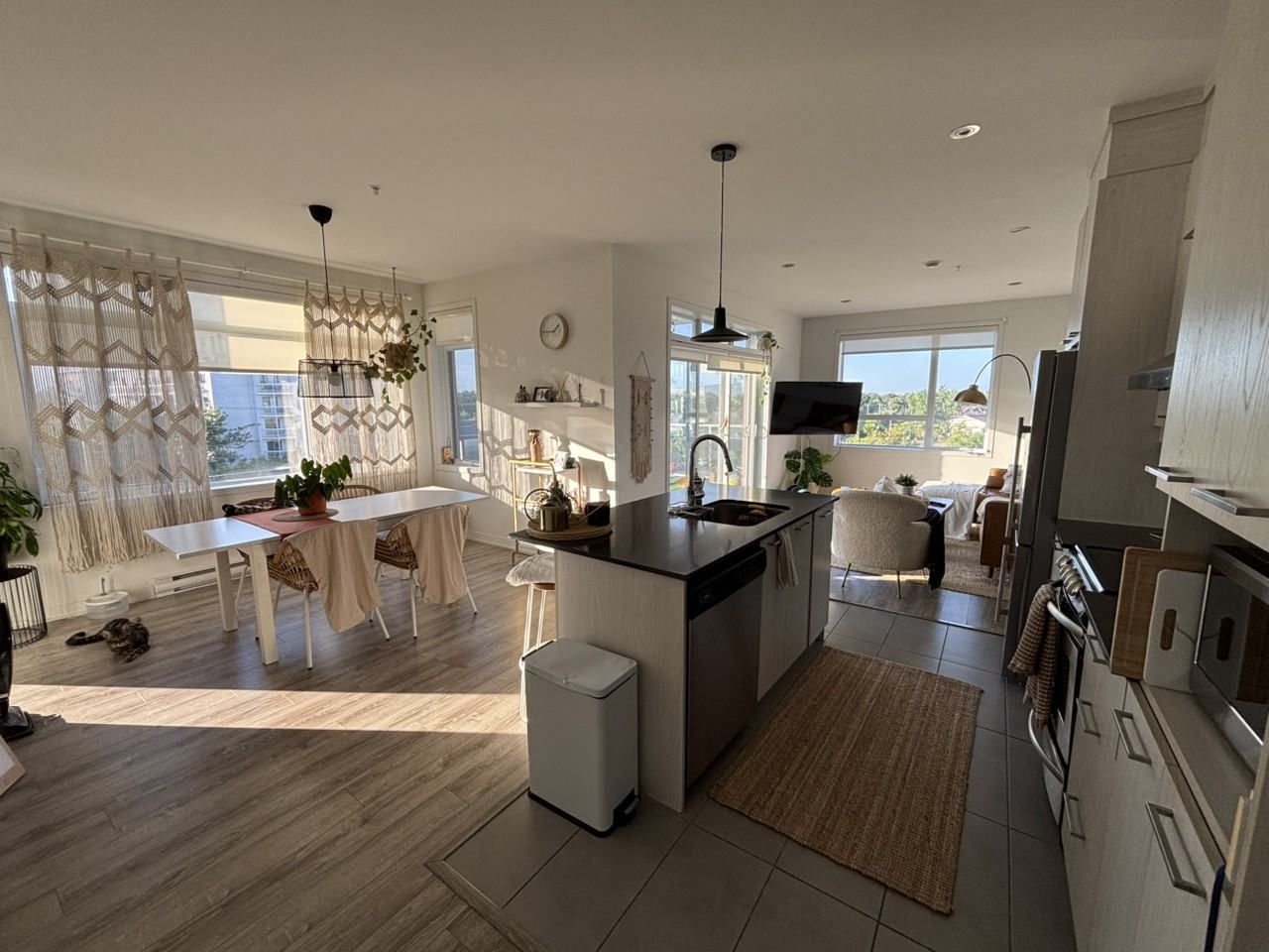 Condo 3 ½ à louer à Saint-Lambert (Parking Disponible) 1 chambre au 5e étage – Condo de coin avec walk-in, balcon, locker et accès direct au train Exo – Saint-Lambert Condo de coin à aire ouverte avec plafonds de 9 pieds et fenêtres sur tous les côtés, offrant une abondance de lumière naturelle. Le grand balcon privé propose une vue dégagée, idéal pour savourer un café le matin ou admirer le coucher du soleil. L’aire de vie ouverte comprend une cuisine moderne avec îlot central et comptoirs en quartz, avec tous les électroménagers inclus. Caractéristiques principales : - Spacieux 1 chambre avec excellente luminosité et walk-in - Aire ouverte conviviale, parfaite pour recevoir ou se détendre - Cuisine avec îlot central, comptoirs en quartz et électroménagers inclus - Laveuse et sécheuse dans l’unité - Grand balcon avec vues imprenables - Locker inclus pour plus de rangement - Plafonds de 9 pieds - Air climatisé mural avec échangeur d’air - L’unité sera repeinte avant l’emménagement - Parking Disponible Emplacement de choix : - Quartier calme à seulement 5 minutes à pied du charmant village de Saint-Lambert, avec ses restaurants, cafés et boutiques - Accès facile aux pistes cyclables pour les amateurs de plein air - Directement en face de la gare Exo de Saint-Lambert – rejoignez le centre-ville (Gare Centrale) en seulement 15 à 20 minutes
