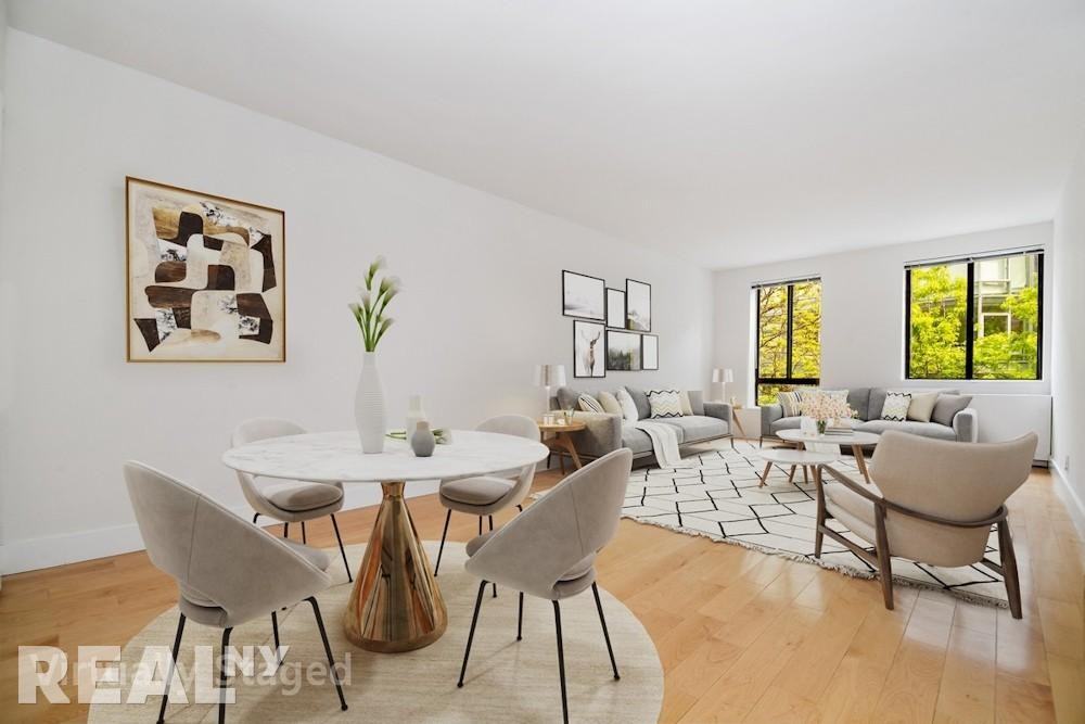 Live in this beautifully renovated, split two-bedroom apartment. Facing south, the home is filled with natural light, illuminating gorgeous hardwood floors. The kitchen features sleek stainless steel appliances, including a dishwasher and microwave. Both marble bathrooms are beautifully appointed, making this an ideal home for modern living. This handsome brick building, located in the heart of Midtown Manhattan, features a stunning glass-enclosed walkway overlooking a beautifully landscaped courtyard. The apartments are thoughtfully designed to maximize light and space. Enjoy a host of amenities including a 24-hour attended lobby, a rooftop deck, and a fitness center, all in a prime location. Nestled in the heart of Midtown West, this location offers the best of New York City living. A short stroll brings residents to iconic Central Park, where an escape from the urban bustle is possible, or to Columbus Circle, a hub of culture and commerce. This dynamic neighborhood is also a foodie's paradise, boasting an incredible array of top-rated restaurants and a vibrant nightlife scene, ensuring endless opportunities for dining and entertainment. Application Fee: $20 Per PersonElectricity Fee: based on usageInternet Fee: based on usageAdditional fees for this apartment may include:Storage Fee: $100 - $200/MonthAnnual Bike Storage Fee: $15Pet Fee: $40/Month