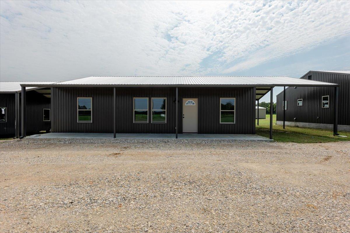 Experience the best of country living in this newly constructed 2 bedroom, 2 bathroom barndominium with 2 horse stalls and 2 covered parking spaces. The open concept floor plan features high ceilings and stained concrete floors. It is perfectly blended Texas charm with modern conveniences. All of the appliances are included plus a full size washer and dryer. There will be a fully fenced back yard for your animals and plenty of room for two horses. Enjoy your coffee on the covered porch and take in the serene views and sunsets.