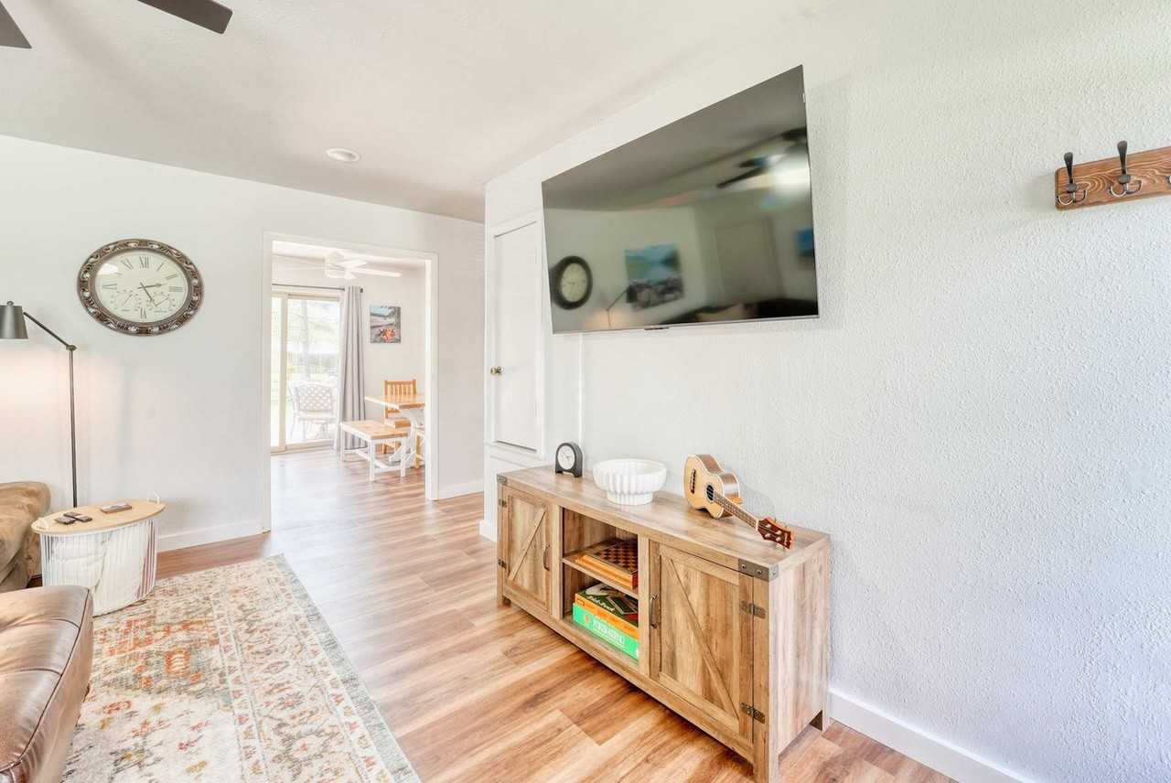 Welcome to your Bentonville base camp! Feel at home in this charming 3-bedroom residence designed for adventurers and families. Natural light fills the open living area, where a plush sectional and smart TV invite relaxation after a day of exploring. Located on E Street, the house is less than 1 mile from the downtown square, shops, art galleries, and restaurants. Drive or bike to Crystal Bridges, the Momentary, and Park Springs Trailhead in minutes. Quick access to I-49 makes day-trips to Fayetteville or Eureka Springs a breeze. An open layout makes gathering easy. The living room flows into a dining area and a fully equipped kitchen stocked with cookware, a coffee bar, seasonings, and a gas range. A breakfast bar is perfect for chatting with the chef. Restful bedrooms include a king bed with premium linens, blackout curtains, and a smart TV in the first bedroom, a queen bed and reading nook in the second, and twin bunk beds plus a pull-out trundle in the third, all equipped with USB chargers, fans, and luggage racks. The full bathroom offers a deep soaking tub/shower combo, fluffy towels, a hair dryer, and complimentary toiletries. Pet-friendly with a pet fee that may apply. Parking is available for up to three vehicles in the garage and driveway. Located in a quiet residential pocket off SE E Street, you'll feel like a local while being minutes from all the action. Walk or bike to Crystal Bridges Museum, Coler Mountain Bike Preserve, Park Springs Trailhead, and downtown Bentonville's lively square with restaurants, shops, and galleries. The neighborhood is safe, family-friendly, and filled with tree-lined streets. Expect an energetic vibe on weekends with trail traffic and events downtown. Quiet hours are from 9 PM to 8 AM, so please respect neighbors and noise ordinances. Enjoy the convenience of self-check-in with a secure keyless entry system. The home is professionally cleaned before every stay for comfort and safety. Long-term stays are welcome, and special monthly rates are available upon request. Includes high-speed Wi-Fi and a workspace. A laptop computer is not included.