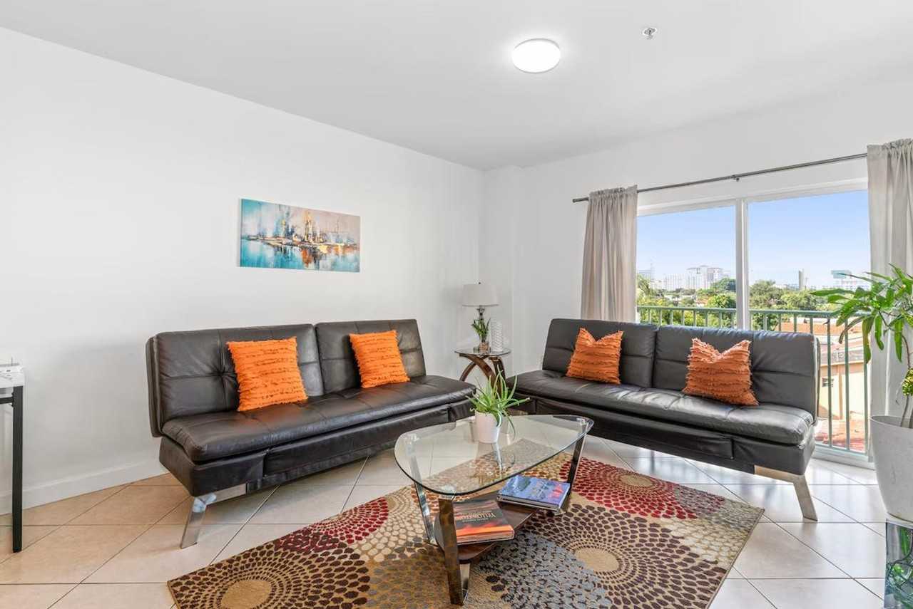 Explore Miami and feel at home in this modern 2-bedroom apartment located on the 3rd floor of the building. This bright retreat features an open-concept living area with two plush sofas and a Smart TV. The fully equipped kitchen includes a coffee machine, blender, toaster, and all necessary pots and pans. The master bedroom offers a king-size bed and a Smart TV, while the second bedroom features a queen-size bed and its own Smart TV. For your convenience, an in-unit washer and dryer, fresh towels, shampoo, conditioner, body soap, toilet paper, paper towels, complimentary coffee, tea, water, an iron, ironing board, hair dryer, safe box, luggage rack, and hangers are provided. One complimentary assigned parking space is included. The garage entrance is located on 22nd Terrace, and you will use the provided FOB for access. This is a pet-friendly property with a pet fee of $100.00 for one pet up to 20 pounds. Early check-in or late check-out is available for an additional fee: 2 hours for $50, 2-3 hours for 50% of the day's rate, and more than 4 hours for 100% of the day's rate. Centrally located in the heart of Miami, this apartment is in a highly walkable neighborhood (Walk Score 92), just a 10-minute walk to Coral Gables and a short drive from Downtown Miami (10 minutes) and Miami Airport (15 minutes). You can easily walk to a supermarket or explore surrounding neighborhood restaurants and shopping in Merrick Park, The Grove, and Coral Gables. The apartment is located in a very urban area, with supermarkets, drug stores, restaurants, and a shopping mall all within walking distance. Smoking is not allowed inside the apartment, and a $450.00 fine will be imposed for violations. If surgery patients damage linens, an extra cleaning fee of $200 will be charged for stains inside the apartment or on the building grounds. If you use towels or linens for cleaning makeup or shoes, you will be charged for replacement: $5 per hand towel, $10 per bath towel, $25 per twin set, $40 per queen set, and $55 per king set. Includes a dedicated desk with high-speed Wi-Fi, providing a perfect workspace.