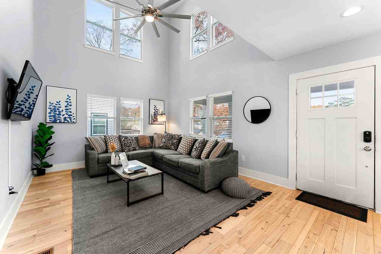 This home is nestled in one of the trendiest neighborhoods of Atlanta, just minutes from downtown. Feel at home in this bright and airy vacation retreat, which offers easy access to all that Atlanta has to offer. Relax and unwind in the hot tub on the back patio, complete with a gas grill and outdoor dining area, making it perfect for group gatherings. Beautifully appointed and fully equipped, this property is ideal for a memorable vacation. The home features four bedrooms and three and a half bathrooms. The master bedroom on the main floor boasts a king-size bed and an en-suite bathroom with a standalone shower and soaking bathtub. The second bedroom offers two queen beds and shares a Jack & Jill bathroom with the third bedroom, which has one queen bed. The fourth bedroom includes two queen beds and a hallway bathroom. Enjoy the large hot tub, fire pit with Adirondack chairs, and a home office. The chef's kitchen with a breakfast bar, dining room with seating for ten, game room with PlayStation, sunroom, sleeper sofa, and smart TVs in all bedrooms ensure comfort and entertainment. High-speed Wi-Fi is available throughout, and the fully fenced backyard features a grill and outdoor dining area. Located just an 18-minute drive from Hartsfield-Jackson Atlanta International Airport, this home offers convenient access to various attractions. Kirkwood Triangle is a mere 3-minute drive away, while downtown Atlanta is just 10 minutes by car. Ponce City Market, Inman Park, Old Fourth Ward, Piedmont Park, Zoo Atlanta, and the Georgia Aquarium are all within a short drive. For shopping needs, Lidl grocery store is a 4-minute walk away, and the Edgewood retail district is a 6-minute drive. Public transportation options include a Marta bus stop at the corner and a Marta rail station 1.7 miles away. Uber and Lyft are also effective means of getting around. The property is equipped with security cameras facing the yards, which will be on during your stay. A smoke and decibel meter is installed to notify you via text if noise limits are exceeded or if smoking is detected on the property. The device does not monitor or record conversations, only noise levels and the presence of smoke. Renters must be aged 21 or older. Registration Number: STRL-2022-00832