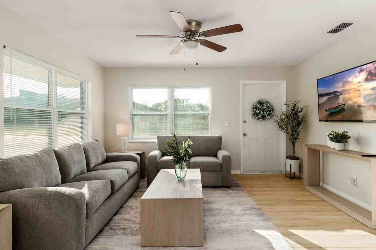 Escape the Tampa traffic while staying close to the city in this modern and charming Zephyrhills duplex! Perfect for families, friends, or couples, this fully furnished 2-bedroom, 1-bathroom home offers a comfortable and convenient base for your Florida getaway. Feel at home in this beautifully decorated space. The living room offers comfortable seating with a 55-inch flat-screen smart TV. The fully equipped kitchen includes a stove, refrigerator, microwave, coffee maker, cookware, and all the essentials for cooking at home. A dining area is available for meals together. High-speed Wi-Fi is available throughout, and a washer and dryer are located outside the unit for private use. You have the option to rent the other side of the duplex to create a 4-bedroom, 4-bathroom home. This home is conveniently located near several attractions, including Sky Dive City (9 minutes), The Great Catch (6 minutes), the Museum of Military History (5 minutes), Pioneer Florida Museum (24 minutes), Highland Axe Throwing (35 minutes), and Tampa International Airport (20 minutes by car). A starter pack of amenities is provided, including a fresh paper towel roll, a new roll of toilet paper per bathroom, hand soap in each bathroom and kitchen, a new sponge, dish soap and dishwasher tabs, a set of travel-sized shampoo, conditioner, and body wash per bathroom, trash bags, and laundry pods. Registration Number: 61-8019835764-4