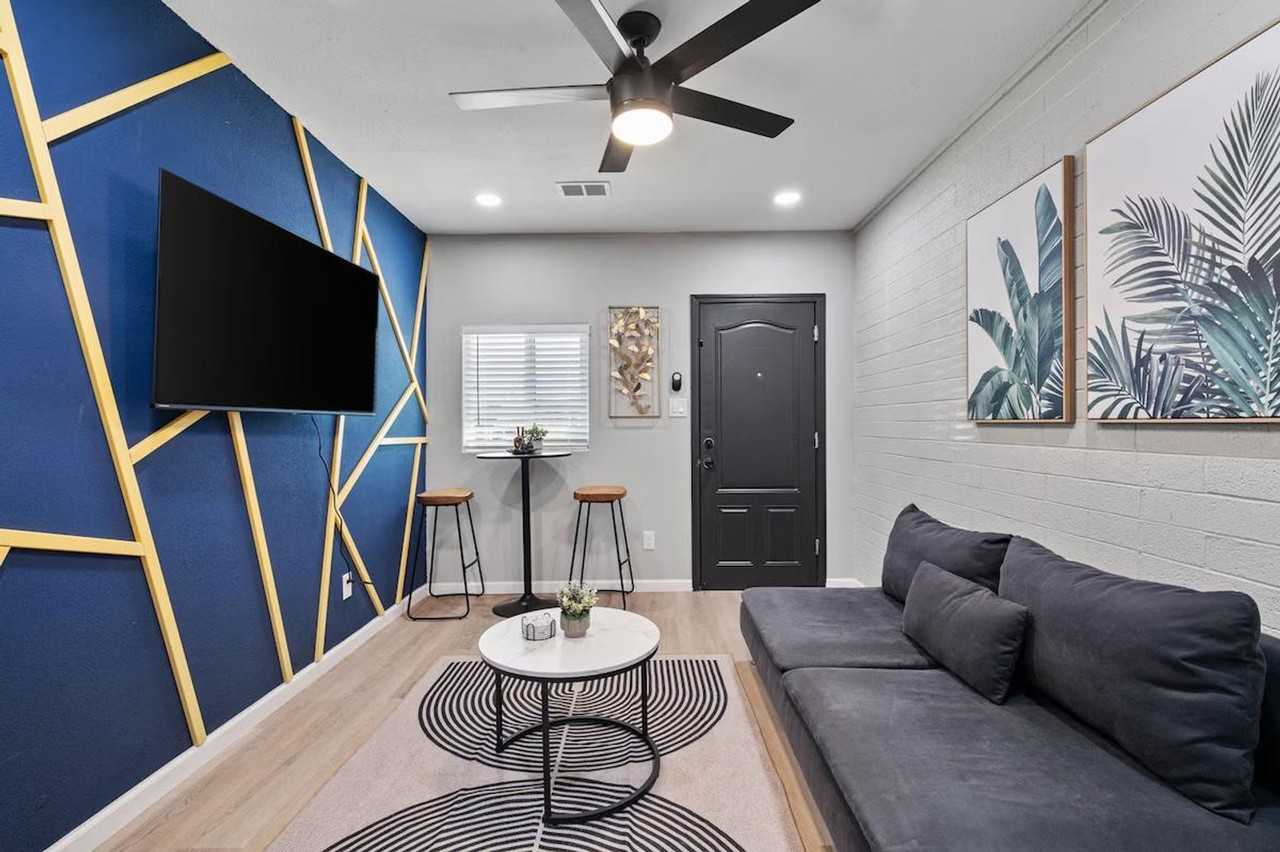 Welcome to this stylish 1-bedroom, 1-bath guesthouse that offers a perfect blend of comfort and convenience. Feel at home with a fully furnished space that includes a kitchen and dining set, a king-size bed, and two smart TVs. The property is gated and pet-friendly, ensuring a secure and welcoming environment for you and your furry friends. Enjoy the convenience of a mini-split AC with heat, a washer and dryer, and free parking. The kitchen is fully equipped with modern appliances including a fridge, electric stove, dishwasher, microwave, air fryer, and blender. You'll find all the essentials for cooking, such as cookware, seasoning, a coffee maker with ground coffee, and a selection of drinking and wine glasses. The guesthouse also features a workspace station with a desk and chair, complemented by high-speed Wi-Fi, making it ideal for remote work. Pets are welcome with a non-refundable pet fee of $150 per pet. Enjoy the shared gated front yard and backyard spaces, perfect for relaxation and outdoor activities. Located just 5.8 miles from Downtown Phoenix, this guesthouse offers easy access to a variety of attractions and amenities. Explore nearby destinations such as Chase Field, Phoenix Rising FC Stadium, and the Phoenix Zoo, all within a short drive. The property is also conveniently situated near several hospitals, universities, and the Phoenix Airport, making it an excellent choice for travelers from all walks of life. The guesthouse features a smart lock and private entrance for easy access. Smoking and parties are not permitted on the premises. Includes a workspace station with a desk and chair, and high-speed Wi-Fi for a seamless remote work experience. A laptop computer is not included.