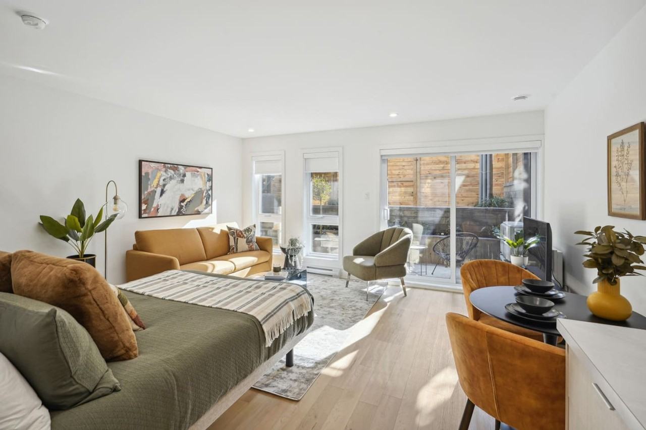 Discover the perfect blend of style, comfort, and convenience in this bright and modern studio nestled in the heart of Ville-Marie, Montreal. Just a 5-minute walk from the metro station, this inviting space is designed to provide a seamless and relaxing stay, whether you're visiting for business or leisure. The apartment features large sliding doors that lead to a private outdoor area, offering a perfect spot to unwind after a day of exploring. This thoughtfully designed studio maximizes natural light and modern aesthetics, creating a warm and welcoming atmosphere. The fully equipped kitchen features sleek appliances and a minimalist design, making meal preparation effortless. The open-concept dining area provides a cozy spot for enjoying your morning coffee or a homemade dinner. The living space offers comfortable furnishings, ensuring relaxation at its finest. The building does not have its own parking lot. Please contact us if you would like to learn more about parking options. Located between Plateau Mont-Royal and The Village, you’ll have easy access to trendy cafes, shopping, restaurants, and Montreal’s top attractions. The nearby metro station makes it effortless to explore everything the city has to offer. No pets are allowed, with a surcharge penalty of $300 per pet if not honored. The apartment is set up for self-check-in through a combination lock or a lockbox, with instructions sent by email or text message before your arrival. This is a self-serve apartment, not a hotel, and there are other apartments in the building with permanent residents. Please be mindful and respectful of their space. Travelers are required to be 25 years old at the time of booking. Fast and reliable WiFi is available for work and leisure, making it easy to catch up on work or stay connected.