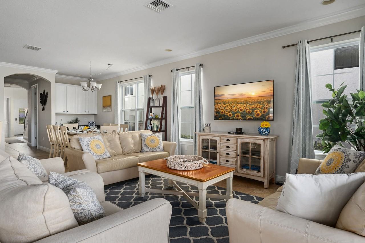 Feel at home in this spacious Reunion Villa, ideal for families and groups seeking fun and relaxation. This villa features 5 bedrooms, 4.5 baths, and sleeps 10. This villa features a private movie theater, pool table, and arcade games for entertainment. The gourmet kitchen is fully stocked with stainless steel appliances, and there are indoor and outdoor dining areas. A free washer and dryer are conveniently located for longer stays. If you would like to add pool and spa heating to your reservation, please let us know in advance for $35 per day of stay. Located within Reunion Resort and Club, you have immediate access to world-class amenities, including golf courses, spa facilities, and a variety of dining options. Just minutes from Disney’s magic in Kissimmee, the villa provides easy access to theme parks, shopping, and local attractions while offering a peaceful retreat to return to each evening. Quiet hours are between 10 PM and 8 AM. There is absolutely no smoking and no drugs allowed inside the home or elsewhere on the property. Only the number of guests indicated on the reservation are allowed to stay overnight on-premise, unless otherwise agreed upon in written form. The number of vehicles on property should never exceed 2 per reservation. Up to 2 cars may park in the driveway. Commercial vehicles, trailers, motorcycles, RVs, and similar vehicles are strictly prohibited anywhere in the community and are not eligible for parking passes. Violations may result in towing or fines per HOA rules. Please respect the neighborhood and neighbors. Be considerate while socializing outdoors after 10 PM and before 8 AM and keep excessive noise to a minimum during this time. No fireworks of any kind. No firearms on property, unless kept locked in vehicle. We reserve the right to terminate a reservation without refund, and/or pursue monetary fines if guests are found to be in violation of any of these rules.