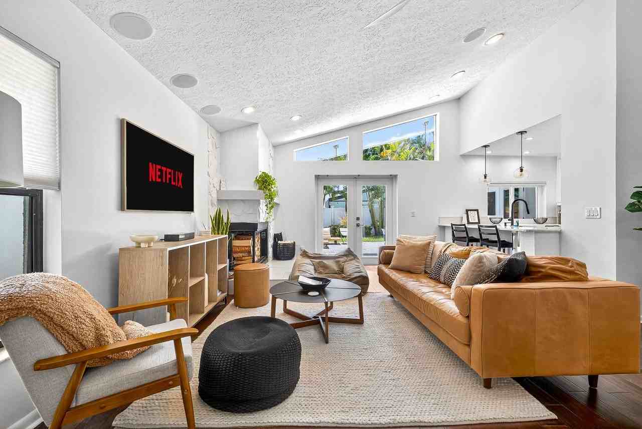 Welcome to your modern Gulf Coast retreat in a quiet Tampa neighborhood, where mid-century modern sensibility meets breezy Florida luxury. Bathed in golden-hour light, this home is designed for comfort and curated for connection, just minutes from the best of Tampa Bay. Whether you're here for rest, celebration, or a change of pace, this apartment offers relaxed refinement that invites you to slow down and stay awhile. Inside, vaulted ceilings, natural textures, and warm wood tones create a bright, airy atmosphere. The thoughtfully designed floor plan allows for effortless gathering, whether you're lounging in the living room, prepping meals in the fully equipped kitchen, or catching up over a long dinner around the table. Open the double French doors to find your private outdoor oasis: a fully fenced backyard with tropical landscaping, glowing evening lighting, and plenty of space to lounge, dine, or simply enjoy the Florida breeze. Highlights include seamless indoor/outdoor living with a fully furnished backyard, covered outdoor dining for six with fans and lighting, a sleek lounge area, smart TVs, fast Wi-Fi throughout the home, and keyless entry. The apartment also offers a washer/dryer, towels, bed linens, a Nest thermostat, a Nest Doorbell camera, Google Home Minis, and Phillips Hue LED lights for ambiance. Parking is available with driveway space for two vehicles and garage parking for one vehicle. Pets are welcome with a fee of $100 per pet per stay, or per month for stays exceeding 28 days. Permits for professional video or photo shoots can be requested for a fee. Parking is available with driveway space for two vehicles and garage parking for one vehicle. Located in Carrollwood Village, this home is within 5–10 minutes of Publix, coffee shops, trendy local restaurants, and breweries. It's a perfect launch point for exploring Tampa Bay, with easy access to I-275 and the Tampa International Airport. You're 15 minutes from the airport, 20 minutes to downtown Tampa, Armature Works, and Riverwalk, and 40 minutes to Clearwater or St. Pete beaches. Rideshare apps like Uber and Lyft are readily available, and the neighborhood is walkable for morning strolls or a quick coffee run. Whether you're heading out for a beach day or catching a game, you're always close to the action, but just far enough to unwind when you get back. Check-in begins at 4 PM and check-out is by 10 AM. Quiet hours are from 8 PM to 10 AM, and noise levels must stay below 80 decibels. Indoor smoking and use of fireworks are prohibited, with a designated smoking area outdoors, 15 ft away from the property. Smoking violations or the presence of smoke smell may incur a $250 remediation fee minimum. Only guests listed on the reservation are allowed on the property, and additional guests must be notified in advance. Disabling or removing security devices or any technology results in a fee or removal from the home without refund. Pets or service animals must be house-trained and groomed, with unattended service animals and ESA pets incurring a pet fee. Any necessary post-visit pest control or damage may result in additional fees. Violation of any house rules may result in removal from the home without a refund. Always report any damage or accidents promptly for a potential full security deposit return. Includes a private office for remote work, ideal for work-from-home or traveling professionals. A laptop computer is not included.
