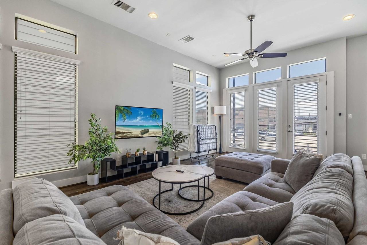 The advertised rate of $5,906/month is the lowest available price, based on a 1 month(s) stay with a move-in date of April 9, 2026. Rates vary depending on the duration of stay, season, and other parameters. For exact pricing and additional pricing components, please visit our website and enter your desired move-in and move-out dates. The rate is applicable when billed upfront; it can be higher if billed in multiple payments. Welcome to your Houston retreat, a luxurious 4-story townhome located near Downtown, the Medical Center, Toyota Center, and Museum District. Ideal for business travelers, families, and medical guests, this upscale home offers a spa-style master bath, 3.5 bathrooms, and a rooftop terrace and balcony for relaxation. Enjoy the convenience of a quiet gated community with smart lock entry and central AC. This townhome is designed for comfort and entertainment, featuring a fully stocked kitchen and dining area, TVs in every bedroom and the main living space, and in-unit laundry on the 3rd floor. The master bedroom includes two full beds and a spa bath, while the guest rooms offer queen beds. A crib is available upon request. Parking is available with a 2-car garage and one guest spot on a first-come, first-served basis. Street parking is also available, but avoid blocking garages or driveways to prevent towing. Pets are welcome with prior approval and an additional fee. Unauthorized pets will incur a $500 fee. Mid-stay cleanings are available for guests staying over 7 days, with a fee applied. Located in Houston’s historic First Ward Arts District, this neighborhood offers vibrant culture and urban convenience. Enjoy walkable streets, modern townhomes, art galleries, and proximity to Downtown. You’ll be minutes away from Buffalo Bayou Park, the Theater District, and Washington Avenue Corridor. The area is walkable, scooter-friendly, and provides easy access to I-45 and I-10. This 4-story home has stairs between each level, and the elevator is currently unavailable. House rules apply strictly, with quiet hours from 22:00 to 7:00. No parties are allowed, and violations may incur fees and booking cancellations. Smoking is permitted outside only. Checkout is at 10:00 AM. For safety, guests must submit a government-issued ID and sign a rental agreement before arrival. Security cameras are placed in exterior areas for guest safety. The townhome is equipped with high-speed 1Gbps Wi-Fi, perfect for work and streaming. A smart lock entry allows for easy check-in, and contactless support is available 24/7 for any assistance needed during your stay.