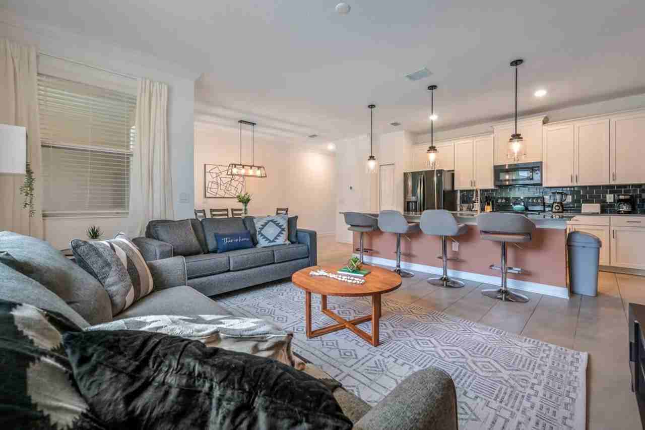 This brand new 4-bedroom, 3-bathroom townhome with a private pool is located at Storey Lake Resort, offering the perfect setting for a memorable vacation getaway. Feel at home with all the comforts you deserve, including Mickey and Harry Potter themed bedrooms that will delight the kids. Situated in a premium location, it's just 10 minutes from Disney parks and surrounded by restaurants, supermarkets, and stores for your convenience. This elegant townhome features a patio where you can enjoy the private heatable pool (available as a paid service). The spacious and beautifully decorated living room is integrated with the dining room and a fully equipped kitchen. On the first floor, you'll find a queen bedroom and bathroom. The second floor houses a king master bedroom suite and two themed bedrooms, one Mickey and one Harry Potter, each with two single beds sharing a corridor bathroom. For your comfort, the home includes a laundry room with a washer and dryer, free WiFi, free parking, and a welcome package with essentials for the bathroom and kitchen. Guests are responsible for replenishing these items. Storey Lake Resort boasts a prime location just 10 minutes from Orlando's major attractions and theme parks, including Walt Disney World, Universal Resort, and Sea World. The resort offers fantastic amenities for the whole family, such as a tiki bar, a resort-style pool with slides and a lazy river, a sports court, mini-golf, kayaking, and a fitness center. There are two clubs within the property, one featuring a themed pirate pool that kids will love, just a short walk from the house. Located off Osceola Parkway, the resort provides easy access to restaurants, shopping, and supermarkets, all within a 5-minute drive. Quiet hours are between 22:00 and 8:00.