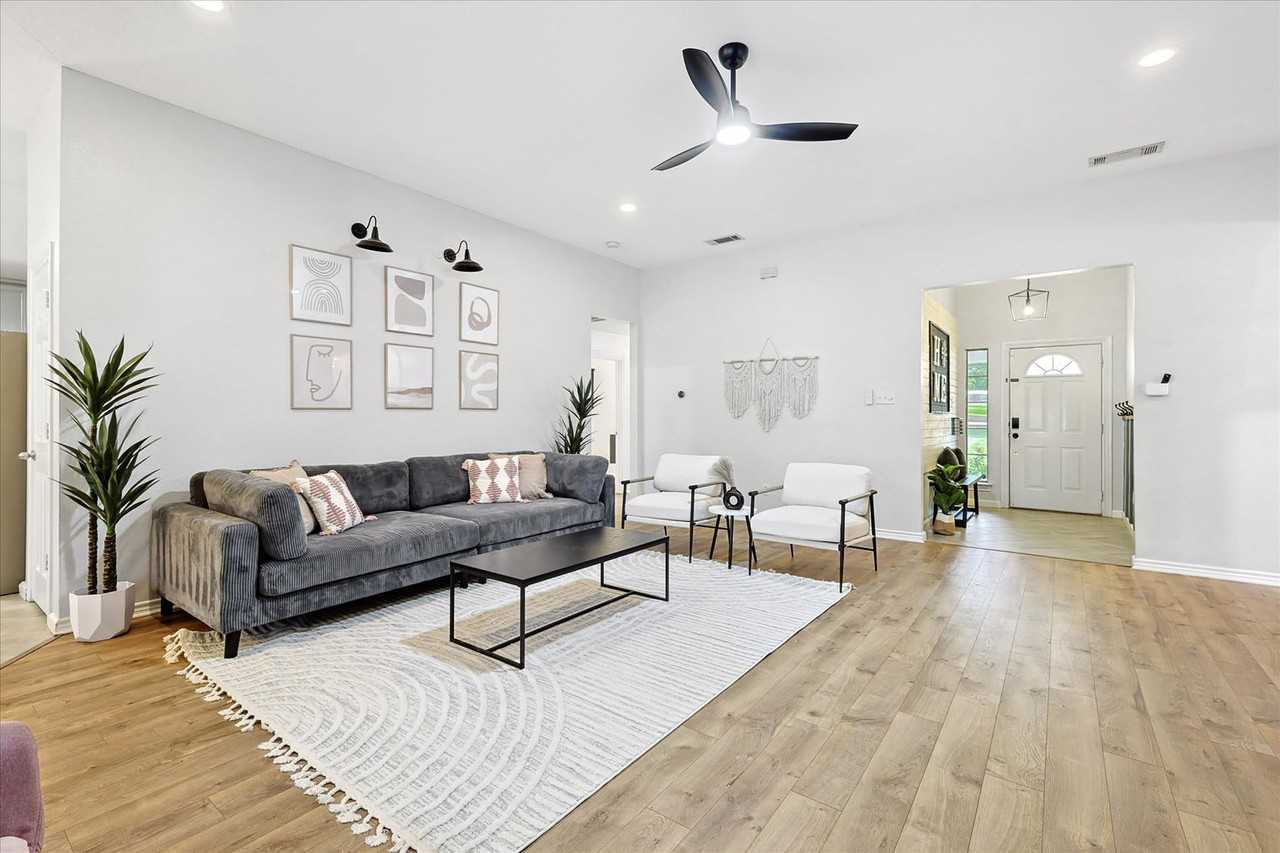 Feel at home in this peaceful 5-bedroom home, a quiet retreat located 24 miles (39 km) from AT&T Stadium and close to Dallas-area events. This spacious single-level home features a fully equipped kitchen and interiors perfect for families and groups seeking space, comfort, and privacy. Enjoy the poolside patio area with a hot tub, a pool with a waterfall and basketball hoop, two wide pool umbrellas, a picnic table, two double hammocks, a pizza oven, an outdoor grill, an outdoor sectional sitting area under a covered patio, a fire pit, a playground for kids with a slide and triple swing set, a family-size trampoline, and a huge grass area with a forest and creek behind the house. Entertainment is provided by smart TVs with streaming apps. House-trained pets are welcome with a $150 fee per pet. From the seventh guest onwards, a $39 fee per guest per night applies, and the fourth bedroom opens for groups of 8+ guests. Located in Red Oak, Texas, this home backs up to a beautiful creek, great for walking. It's just 3 minutes away from Te'Jun, a Cajun restaurant popular among locals, and minutes away from Record's BBQ and T D's BBQ. Conveniently located right off Interstate 35 E, you'll be a quick drive from Country View Golf Club (13 min), Dallas Zoo (18 min), Western Kountry Klub (21 min), Downtown Dallas / Reunion Tower (20 min), Cotton Bowl Stadium/Fair Park (25 min), Dallas Museum of Art (26 min), and AT&T Stadium / Six Flags Over Texas (31 min). Only registered guests are allowed. No indoor smoking is permitted, and a $500 fine applies for violations. Quiet hours are from 10 p.m. to 9 a.m. The pool waterfall is out of service. The pool and hot tub are professionally serviced twice a week during the summer months and once a week during the rest of the year. Landscaping is done once a week. For security, there are two cameras: one at the front door overlooking the yard, and another in front of the garage facing the cars, which record 24/7. Quiet hours are between 10 p.m. and 9 a.m.