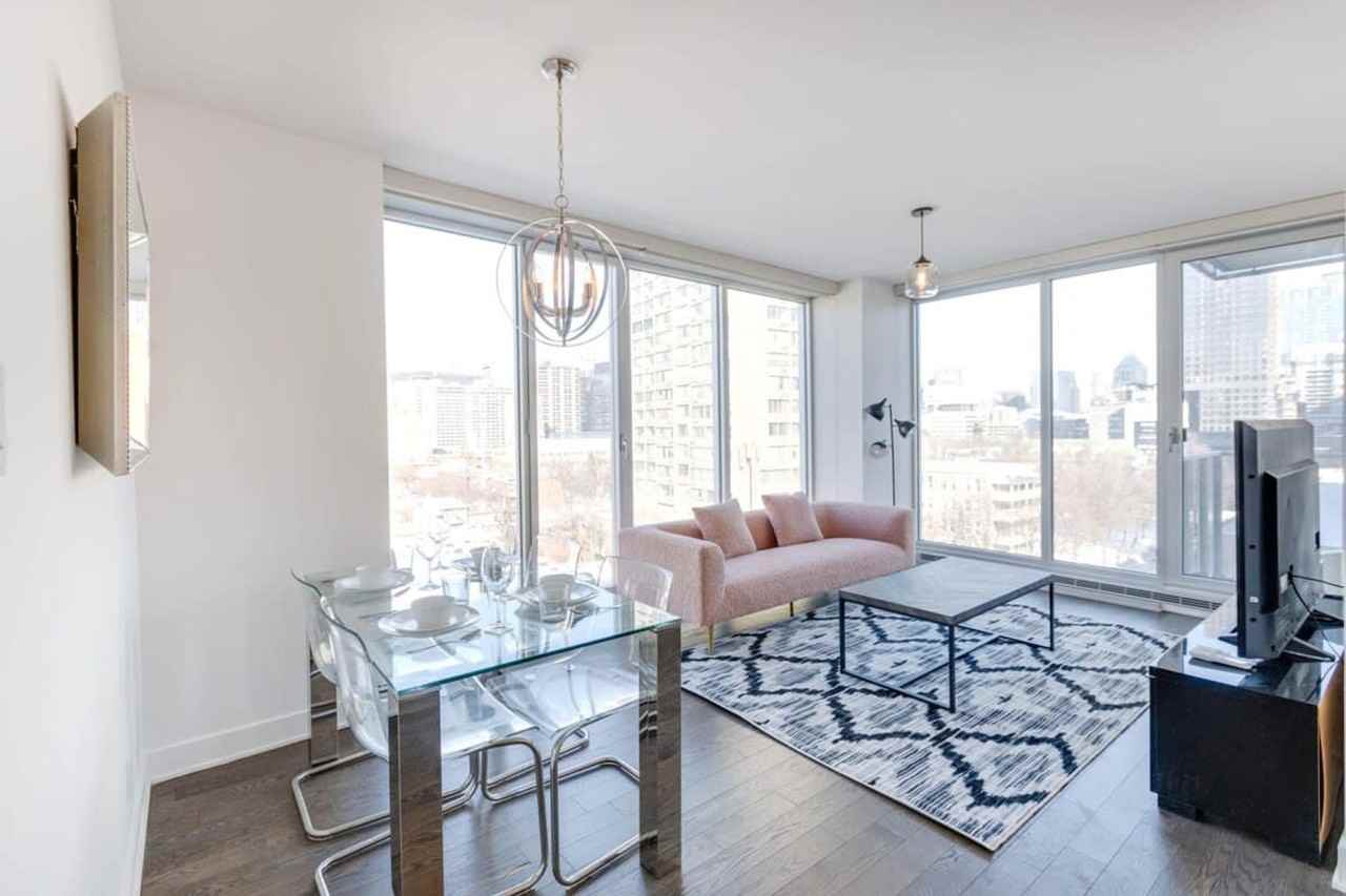 The advertised rate of C$5,313/month is the lowest available price, based on a 1 month(s) stay with a move-in date of April 3, 2026. Rates vary depending on the duration of stay, season, and other parameters. For exact pricing and additional pricing components, please visit our website and enter your desired move-in and move-out dates. The rate is applicable when billed upfront; it can be higher if billed in multiple payments. This prestigious building is located in the heart of downtown Montreal, near the city's best restaurants, shopping, and entertainment. Surrounded by nature, it features a large balcony and a rooftop terrace offering stunning views of the city. This newly furnished 2-bedroom condo boasts a fully stocked kitchen, a dining area, and two spacious bathrooms. You'll enjoy top-of-the-line appliances and in-suite laundry. The beds are extremely comfortable, and there's a 60" smart TV. Complimentary coffee, tea, and basic cooking supplies are provided. The condo includes an in-unit balcony and access to a large rooftop terrace, pool, BBQ, playroom, and gym. A baby crib is available for an additional fee and all guests must adhere to building policies, rules, and general maintenance requirements. Situated in the heart of Montreal, this condo places you steps away from Crescent Street, one of the city's hot spots for shopping, dining, clubs, and museums. You are also within walking distance to major downtown attractions, including Old Montreal, the Bell Centre, the Lachine Canal, the Notre-Dame Basilica, and the Fine Arts Museum. You must fill out the check-in form prior to your arrival. Smoking is not allowed, and breaking this rule will incur a $500 fine. Parties and excessive noise are strictly forbidden. At the first complaint, the booking will be terminated without refund. If you have any questions about AC location, heating, noise levels, pets, parking, mobility issues, or any special needs or requirements, be sure to contact before booking to ensure the place is a good fit for you.