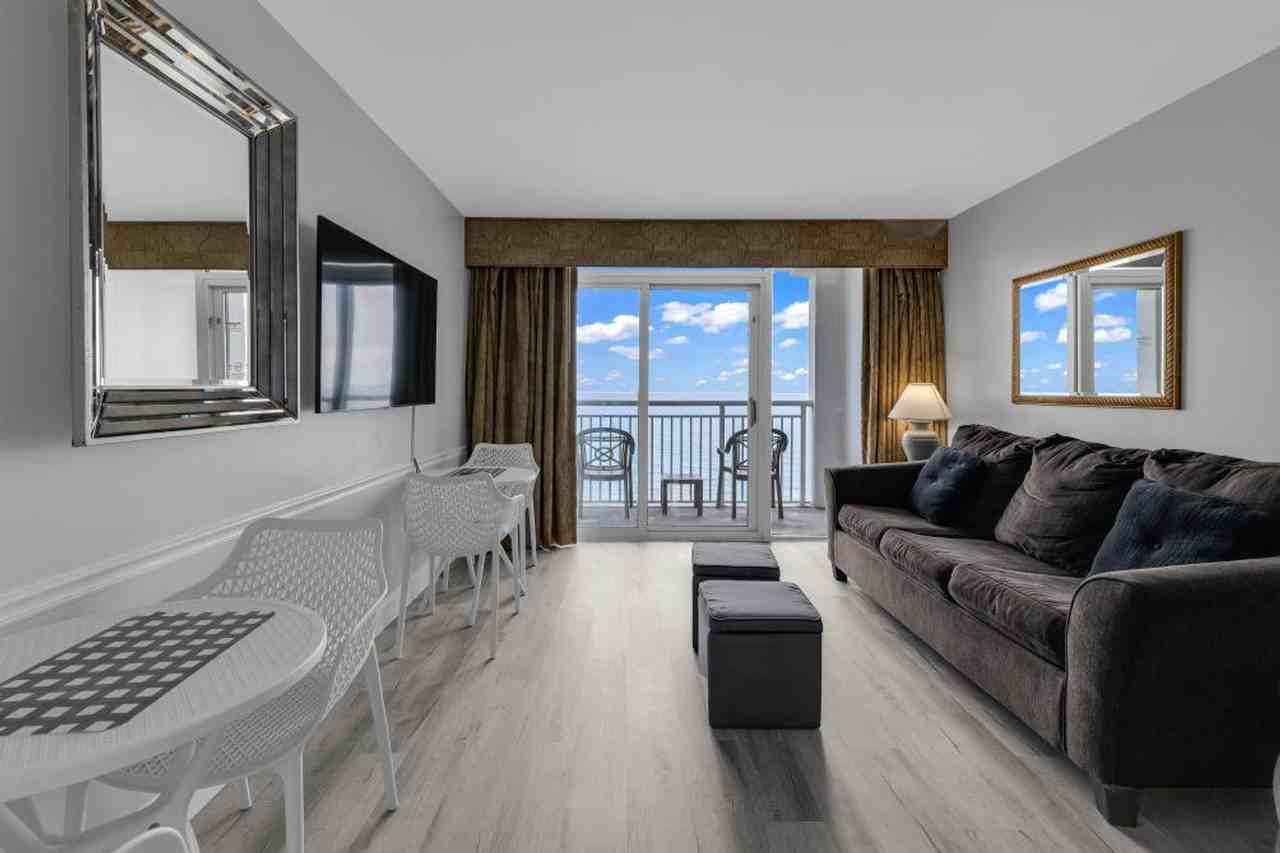 Similar to the most desirable spots you can imagine for your vacation, this condo provides a 1-bedroom and 1-bathroom area with a full kitchenette, queen and sofa beds, free street parking, and a renewed interior design. The open, airy, bright, and cheerful surroundings make it suitable for couples and solo travelers ready to discover new adventures. You’ll spend special days filled with positive moods and complete feelings, waking up each morning with inspiring sounds and sleeping peacefully every night. Take a relaxing ride on the heated, 200 ft. indoor lazy river, enjoy a day in the heated indoor pool, or spend some time with friends in the indoor hot tub. Kids will love the indoor kiddie pool, and you can take a dip in the outdoor pool while the kiddos enjoy the kiddie pool with a mushroom water fountain. Parking passes are available for a maximum of 2 cars, with additional free street parking. Explore local attractions such as WonderWorks, Myrtle Beach Sky Wheel, Myrtle Waves Water Park, Family Kingdom Amusement Park, and Dragon's Lair at Broadway at the Beach. Enjoy Jurassic Golf, Jungle Safari, Captain Hook's Adventure courses, Nascar SpeedPark, Brookgreen Gardens, and Championship Golf. Coastline Pest Control performs mandatory preventative treatments in every unit on the 3rd Tuesday of each month. Grilling is prohibited, and any violation of this policy will incur a $200 fine. Bicycles, motorcycles, mopeds, and trailers are not allowed. No smoking is allowed in the unit or on the balcony, with any violation incurring a $250 fine plus cleaning costs. No pets are allowed, with any violation incurring a $200 fine. Gatherings of more than 6 people, including both overnight guests and visitors, are not allowed and may be subject to eviction. House parties and illegal substances are strictly prohibited and grounds for immediate eviction. You must be at least 21 years old to book this property. Leaving the unit later than the check-out time will incur a late check-out penalty starting from $500. For same-day late check-ins, you need to get the host's approval before booking. Upgraded internet is perfect for remote work from the beach, offering 200mbs/20mbs per unit.