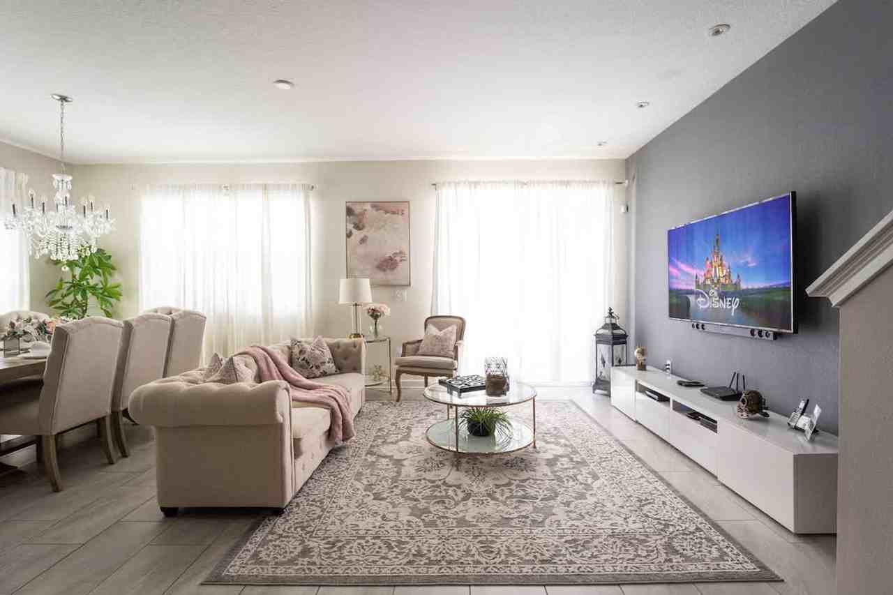 Feel at home in this spacious 5-bedroom, 4-bathroom property accommodating up to 13 guests. With a generous size of 2,168 sq/ft, this home offers a comfortable and inviting atmosphere for your stay. The living room features a 65" Smart TV, while the bedrooms are equipped with Smart TVs ranging from 32" to 43". Enjoy high-speed Wi-Fi provided by Spectrum, offering up to 1 GB of speed, although wireless speeds may vary. The property includes a private west-facing pool with a deep end of 4 feet, surrounded by a safety fence. A pool heater is available for an additional fee of $35 per day, with a minimum of 3 consecutive days. Optional extras include pool heater rental, grill rental, early check-in, late check-out, and mid-stay cleanings. Baby items such as a Pack n' Play are complimentary, though sheets are not provided. Located in the scenic Storey Lake Resort, this property offers access to a variety of water amenities and activities. Enjoy the Hideaway Club's tropical resort features, including a large pool with a lazy river, waterslides, and a children's splash pad. The resort also offers fishing, canoe and kayak rentals, mini-golf, volleyball, and basketball. Relax at the poolside café or the covered tiki bar, or explore the clubhouse with its guest lounge, fitness center, and business center. This property is not pet-friendly and grills are not allowed on the premises. The pool and spa area is equipped with a safety fence, and the screen doors are padlocked for security. Smoking is strictly prohibited, with a non-refundable fee of $250 plus tax for violations. Check-in is at 4 PM and check-out is at 10 AM, with fees applicable for unauthorized late check-outs. The property is self-catering, so guests should bring or purchase necessary items beyond the basic starter kit provided. Be aware of local wildlife and pests, as the property is in Florida, and exercise caution outdoors. The property has a regular pest control service, but sightings of wildlife or pests are possible.