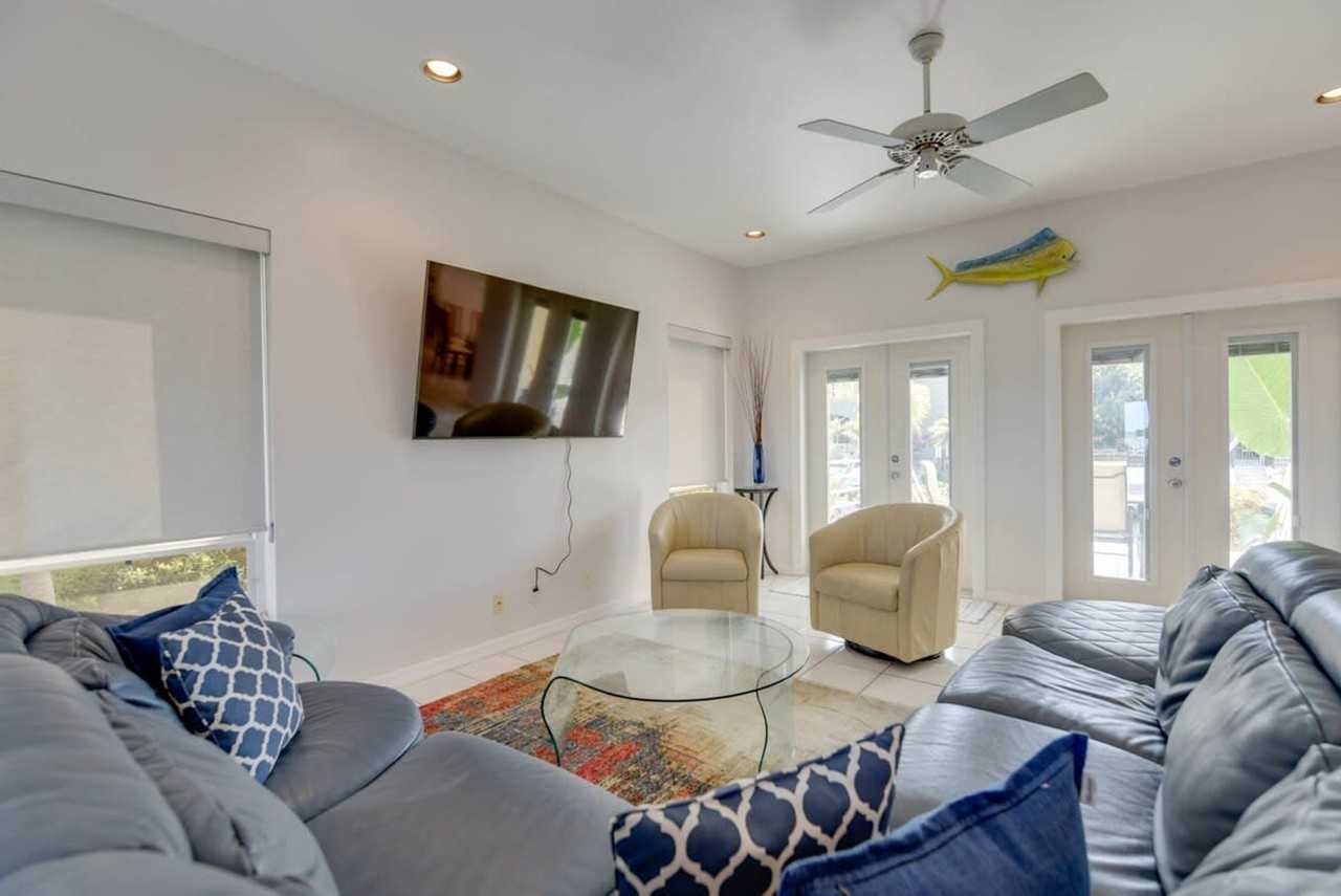 The Haven House is a truly heavenly retreat nestled on the quiet residential canals in Key Haven. This home boasts a modern waterfront private backyard with a dock and boat lift. With space-maximizing and luxury island touches from top to bottom, this monthly rental has it all. Stay just 15 minutes from downtown Duval Street in this one-of-a-kind island home. Seamless indoor-outdoor entertainment is made easy with the open-concept floor plan and inviting features at the Haven House. With an indoor tiki bar, sectional couch, and bay doors that lead to the back deck, the home is flooded with natural light for a true Florida Keys feel. This 3-bedroom bungalow includes 1 king-size bed and 2 queen-size beds. It also includes three full bathrooms. Private washer and dryer are available. There is a 28-night minimum stay requirement. Located less than one mile from Key West and all of its famous attractions in a family-style neighborhood. There is a local park within walking distance to spend time with your family and friends. Rent a boat for the day out of Stock Rock Café at Cow Key Marina and embrace island time or catch a kayak tour out of Lazy Dog in Stock Island. Enjoy locals’ favorite restaurants like Hogfish Grill, Roostica, or Chicos Cantina. Take a trip to Hurricane Hole for happy hour or head downtown for some of the best seafood. Travel by car, boat, or plane to this luxury estate. The driveway allows parking for up to 2 vehicles. If you didn’t travel by water, you can also drop your boat at one of the public boat ramps in Key Haven or Stock Island. Rent a golf cart, scooter, moke, or bike for the day to explore the area. Damages to the property or additional cleaning due to excessive mess are subject to charges.