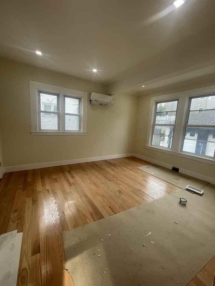 Beautiful apartment with new modern bathrooms and kitchen. As you enter the spacious living room with fire place hardwood floors and recess lighting. Backyard 2 car garage and driveway. Apartment also comes with a finished basement with full bathroom and separate entrance.