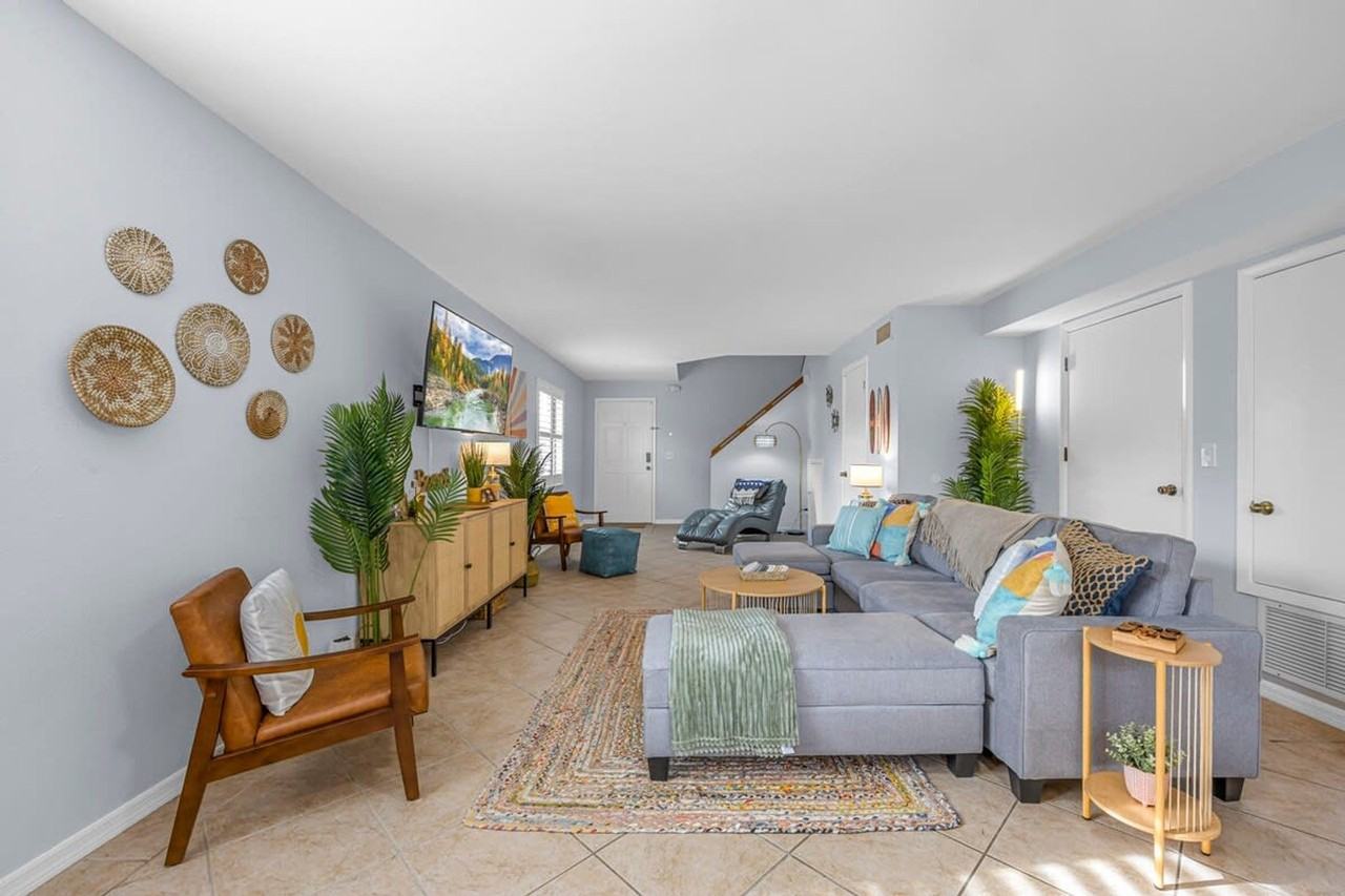Welcome to your beachside escape in Cocoa Beach! This 2-bedroom, 2-bathroom townhome is just steps from the beach. Inside, you’ll find a cozy living area with comfy seating and a dining area perfect for family meals. The kitchen has everything you need for easy meal prep. With its perfect location, you'll be within walking distance of all the best spots Cocoa Beach is home to! Centrally located in Cocoa Beach, this 2-bedroom, 2-bathroom townhome offers the perfect blend of coastal boho charm and modern convenience with just a short walk from the beach. The townhome features three bedrooms with king and queen beds, including the primary suite with a private bathroom and vanity area. The kids will love to hang out and relax in the kids room on the comfy bunk beds. In the heart of the home, you'll find a modern, fully stocked kitchen—perfect for cooking everything from breakfast to dinner. Step into the living area, where a cozy sofa and large flat-screen TV invite you to unwind. The dining area and back patio are ideal for hanging out or enjoying a quiet evening enjoying the breeze. For those who need to stay connected, high-speed internet access is available throughout the property. Enjoy additional comforts like a dedicated workspace for business and beach essentials including chairs, an umbrella and towels for your perfect beach day. While we love all furry friends, only dogs are allowed at this property, with a fee of $100 per pet, per stay. Right in the heart of Cocoa Beach, this townhome offers a prime spot for exploring everything on foot, bike, or even a golf cart. Step out the door and you're moments away from beachside cafes, unique boutiques, vibrant bars, and tasty food. Walk through the amazing murals by local artists and listen to the occasional live music. Everything you need for a true Cocoa Beach experience is just a leisurely stroll away. Sunbathing, swimming, surfing, and beach volleyball are just a short walk away, and you might even catch a rocket launch while you're here. Take a walk to downtown Cocoa Beach, with so many options for restaurants, bars and shops, you can count on leaving your car parked during your whole stay. Or go on a short drive to the Kennedy Space Center to witness the history of NASA or visit the Brevard Zoo, approximately 25 minutes away for an unforgettable animal experience. This also makes a great spot for a pre and post cruise destination. Guests will have full access to the entire property, ensuring privacy and comfort throughout their stay. Our digital locks let you arrive and check yourselves in, but we’re here if you need us. Message us on the app if you need anything during your stay. For urgent matters, call the number provided. To ensure a comfortable start to your stay, we provide an initial stock of essentials like paper towels, toilet paper, tissues, coffee pods, creamer, sugar, light cleaning supplies, garbage bags, sponges, and dish soap. If you need additional supplies during your stay, please plan to replenish them as needed. Mailbox access is not available for guests. All reservations require either a refundable security deposit or the purchase of a damage waiver. Enjoy additional comforts like a dedicated workspace for business and high-speed internet access is available throughout the property.