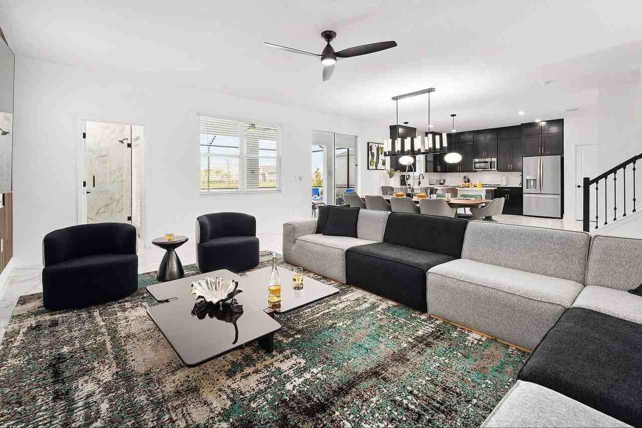 Feel at home in this spacious villa located next door to Universal Orlando and Epic Universe, and steps from International Drive. This home offers an open-plan living/dining area. The fully equipped chef’s kitchen features elegant dark cabinetry, marbled counters, and stainless-steel appliances, including a French door fridge with freezer drawer, double basin sink, and 4-burner stove. It also includes a breakfast bar with 4 stools and a full set of cookware and tableware. Enjoy a movie in the custom-built arcade and movie theater with a 98” TV and 14 relaxing recliner seats. The game loft features a pool table, jukebox, wall scrabble, shuffleboard, a big TV, plush pouf chairs, and a laid-back red bench. The in-unit laundry room boasts a full-sized washer and dryer. The private patio and pool area includes a pool/spa, covered lanai, patio table with 10 chairs, lounge area, safety fence, privacy pool screen, and outdoor grill. Pool heat is available for an additional fee. This villa is equipped with one Pack n’ Play and 1 high chair; additional items are available for rent. Beginning December 15th, 2025, a daily parking fee will be charged for each vehicle parked at the resort. Theme parks, shopping, dining, and entertainment are a walk, jog, or short drive away. Dezerland Park, FunSpot America, and Orlando International Premium Outlets are less than 1 mile away. Epic Universe is less than 2 miles away, Universal Studios Orlando is 2 miles away, SeaWorld Orlando is 6 miles away, Walt Disney World is 9 miles away, and ESPN Wide World of Sports is 13 miles away. Construction may be underway at or around the resort's apartments. The kitchen and bathrooms are stocked with essentials to get you started; plan to purchase additional items for the balance of your stay.